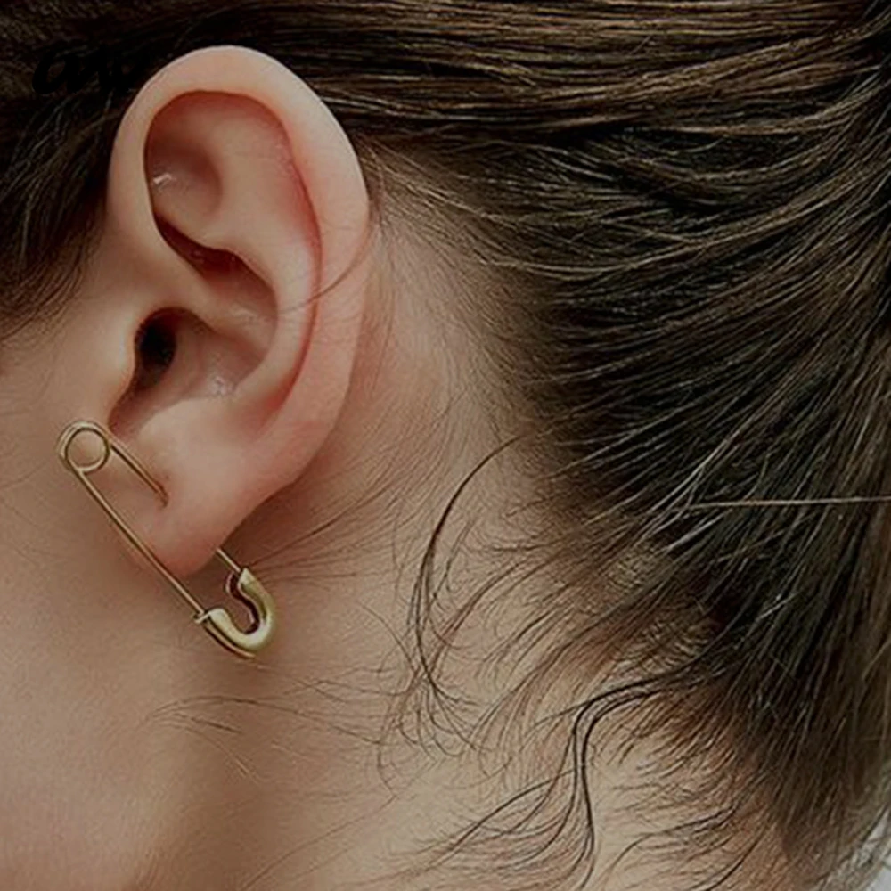 12 шт нержавеющая сталь Safey Pin серьги для женщин очаровательные ...
