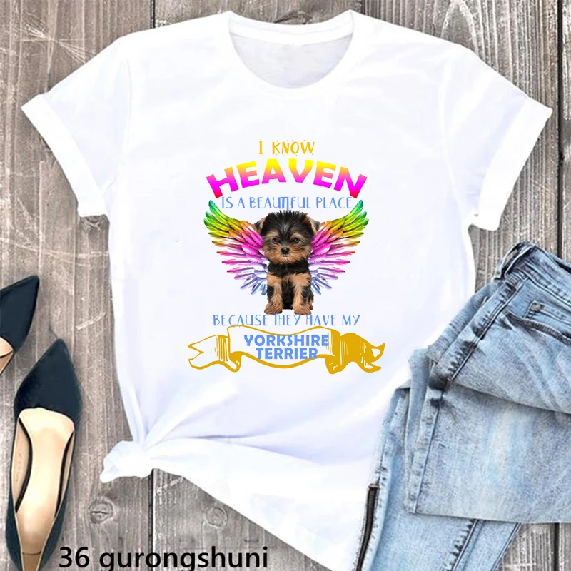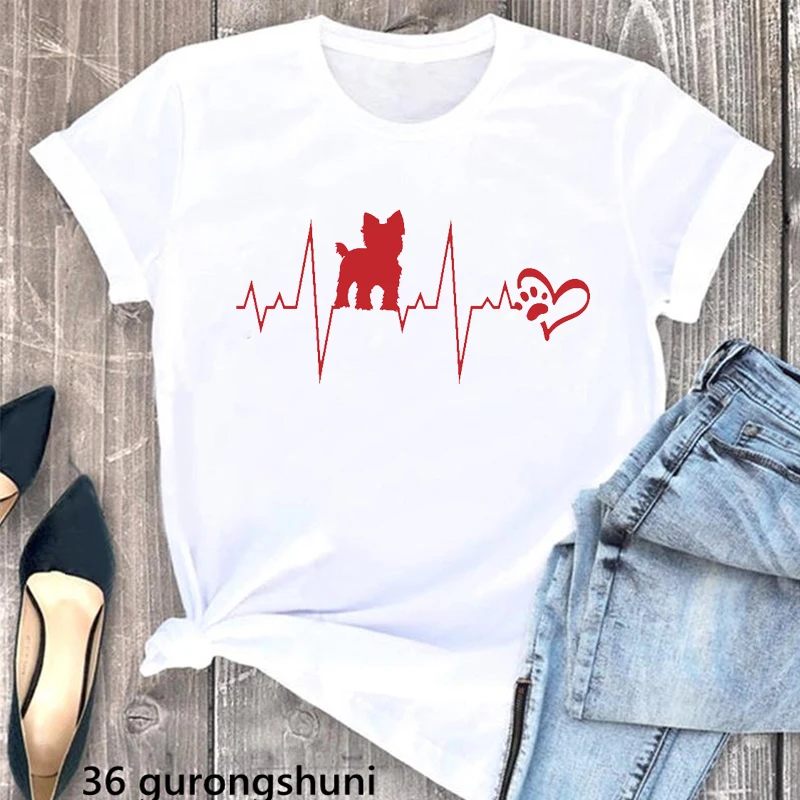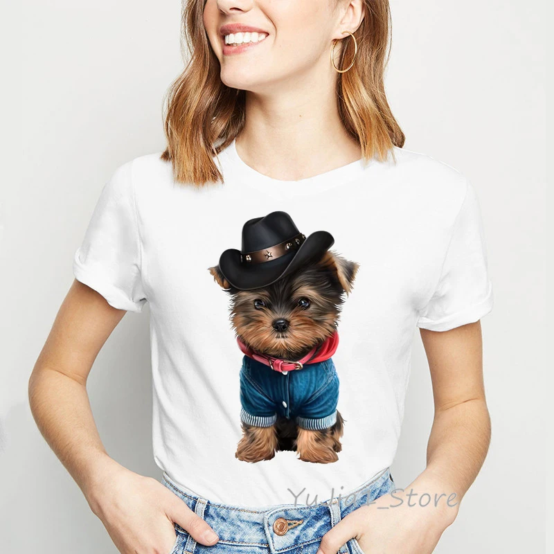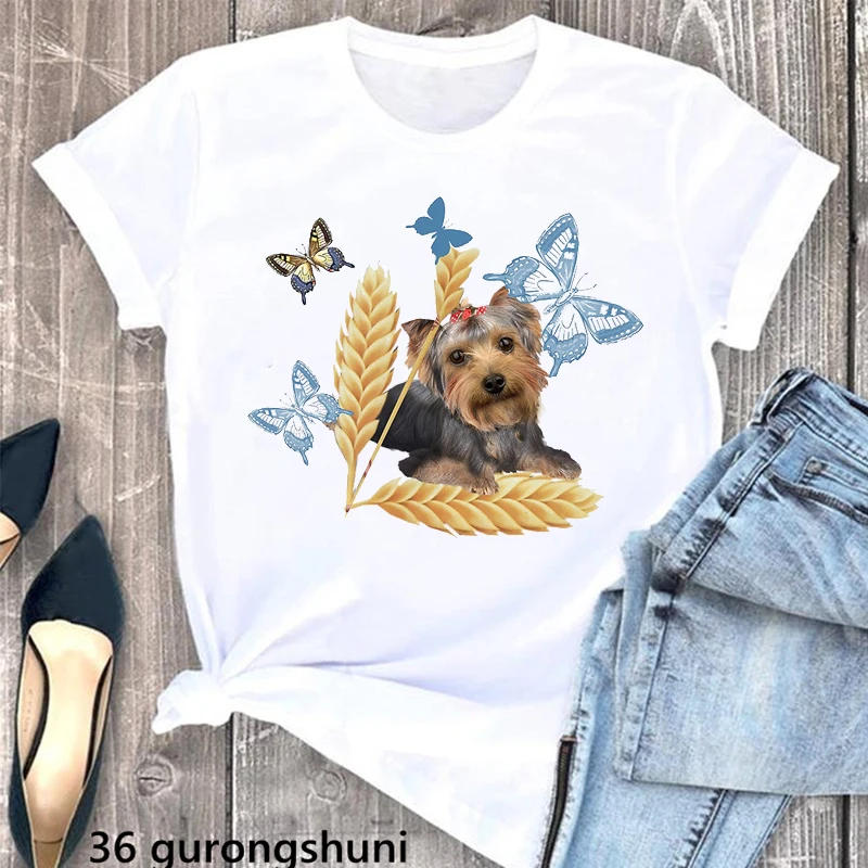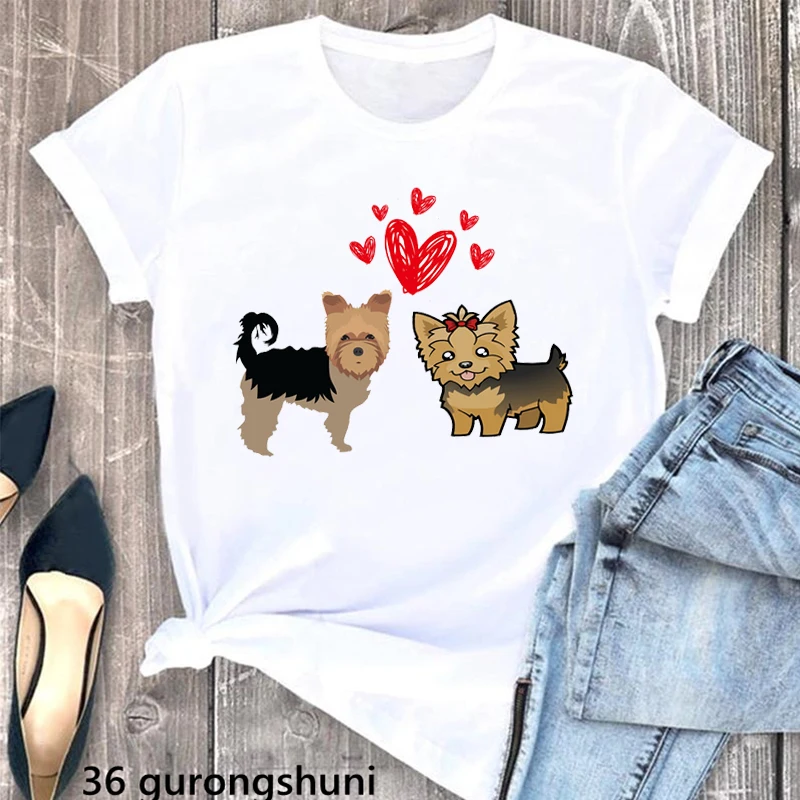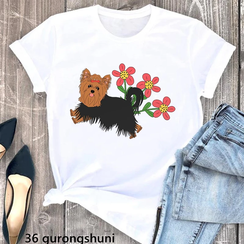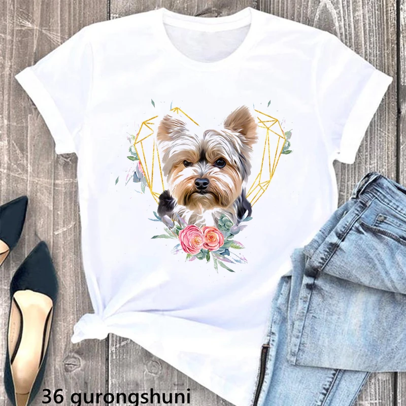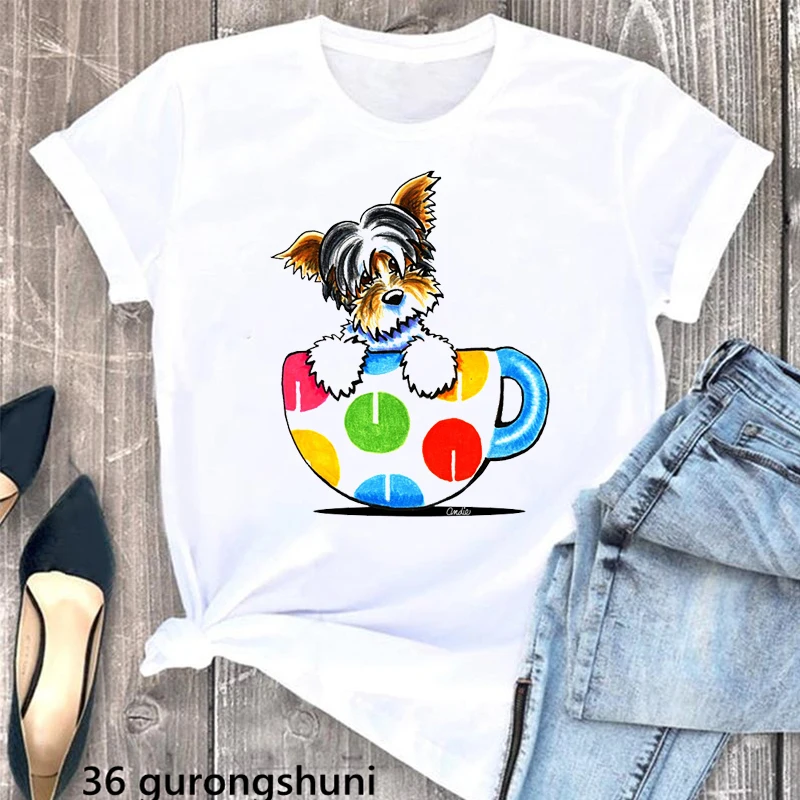 Женская футболка с принтом милого щенка йоркширов, футболка, Женска...