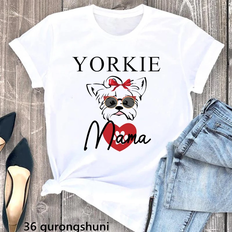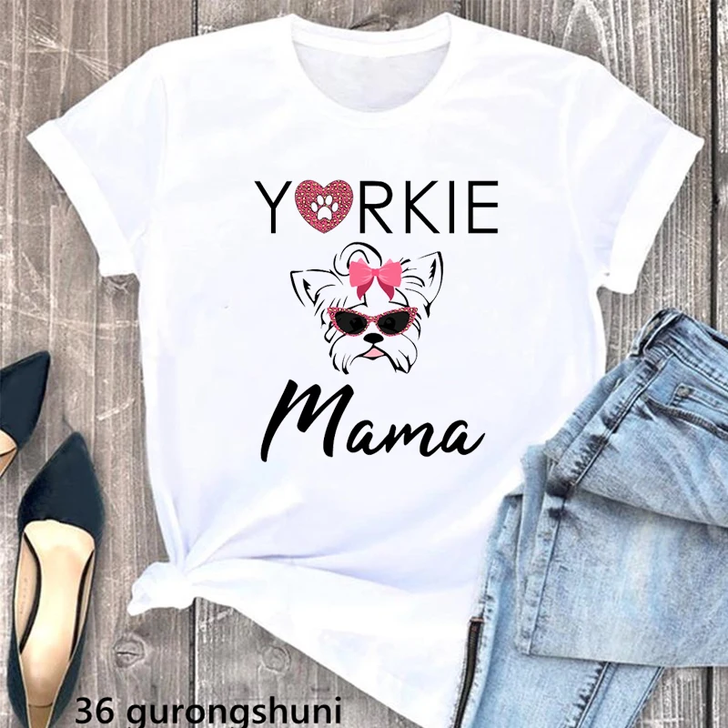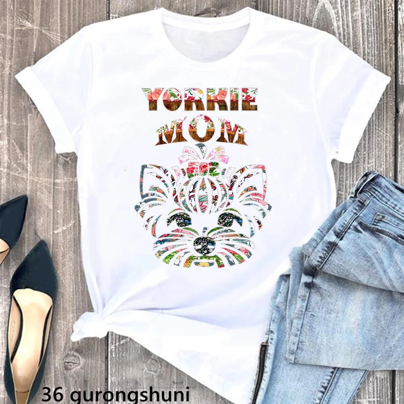 Футболка yorkieFrench bulldog mom с принтом, белая женская футболка...