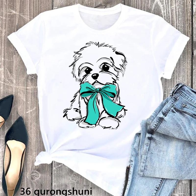 Женская футболка с принтом в виде милой собаки и животного, летняя ...