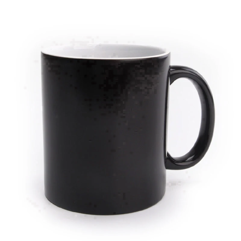 Термочувствительный материал на поверхности кружки меняет цвет, когда заливается горячая жидкость