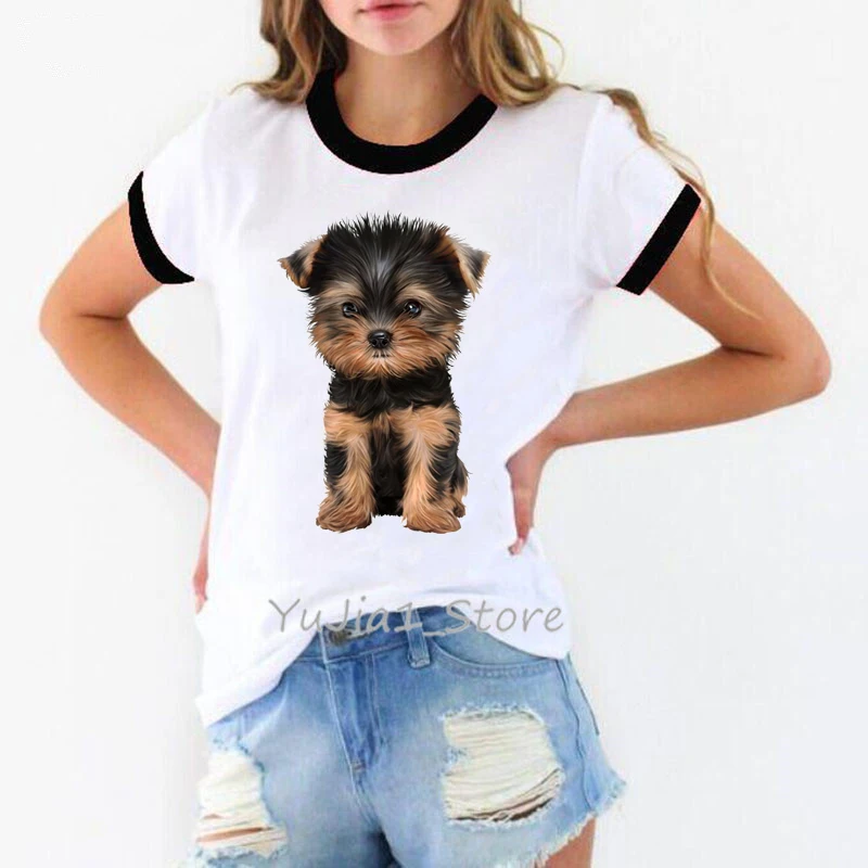 Футболка женская с милым принтом Йорков, летний топ, уличная одежда, одежда для влюбленных собак, футболка