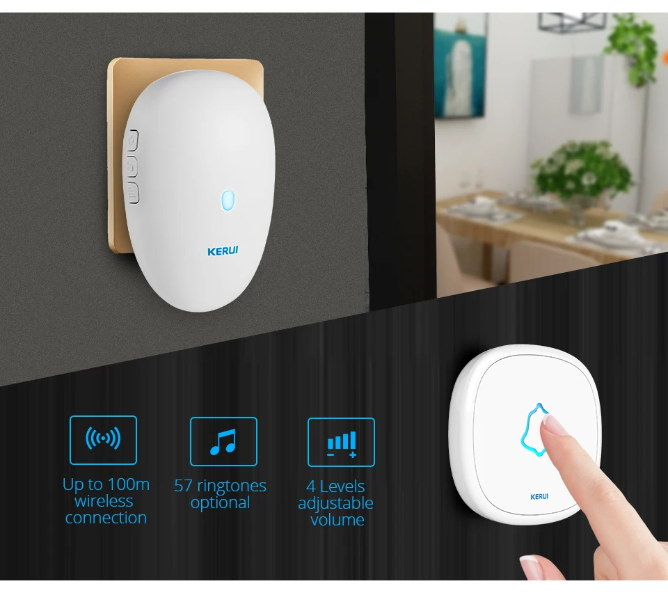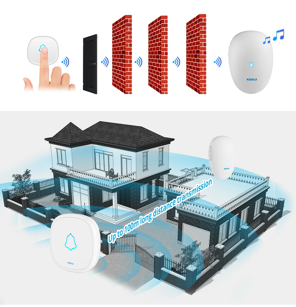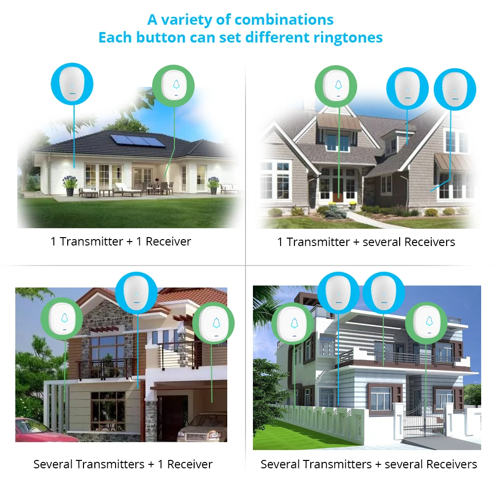 1. Установите разный звук кольца на разные кнопки, чтобы вы могли легко узнать, какая дверь есть у кого-то снаружи.2, если ваш дом большой, то Купите больше приемника для установки в другом помещении.
