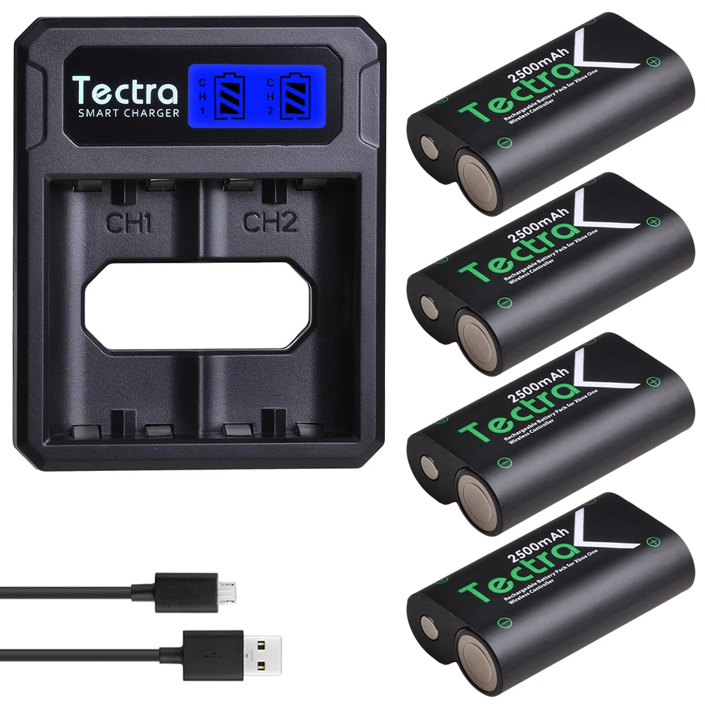 Аккумуляторы Xbox One 2500мАч, 4 шт., USB зарядное устройство с ЖК-экраном, для беспроводного геймпада для Xbox One, Xbox One S, Xbox One X, Xbox One Elite