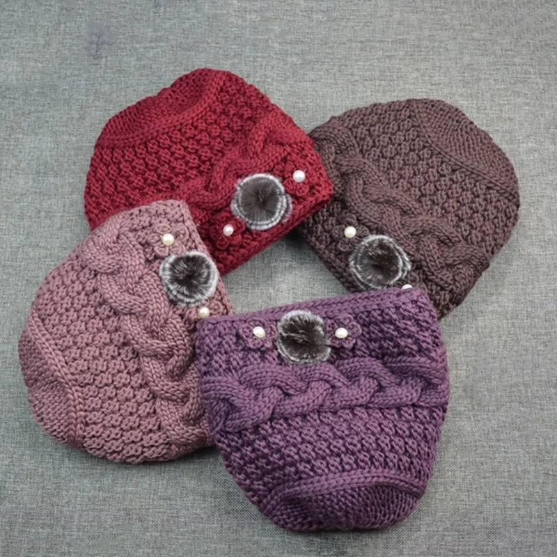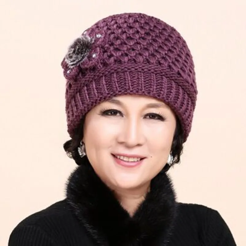 Зимняя шапка MAERSHEI для женщин среднего возраста вязаная шапка с цветами в горошек элегантная плюшевая теплая Женская шапка для мам