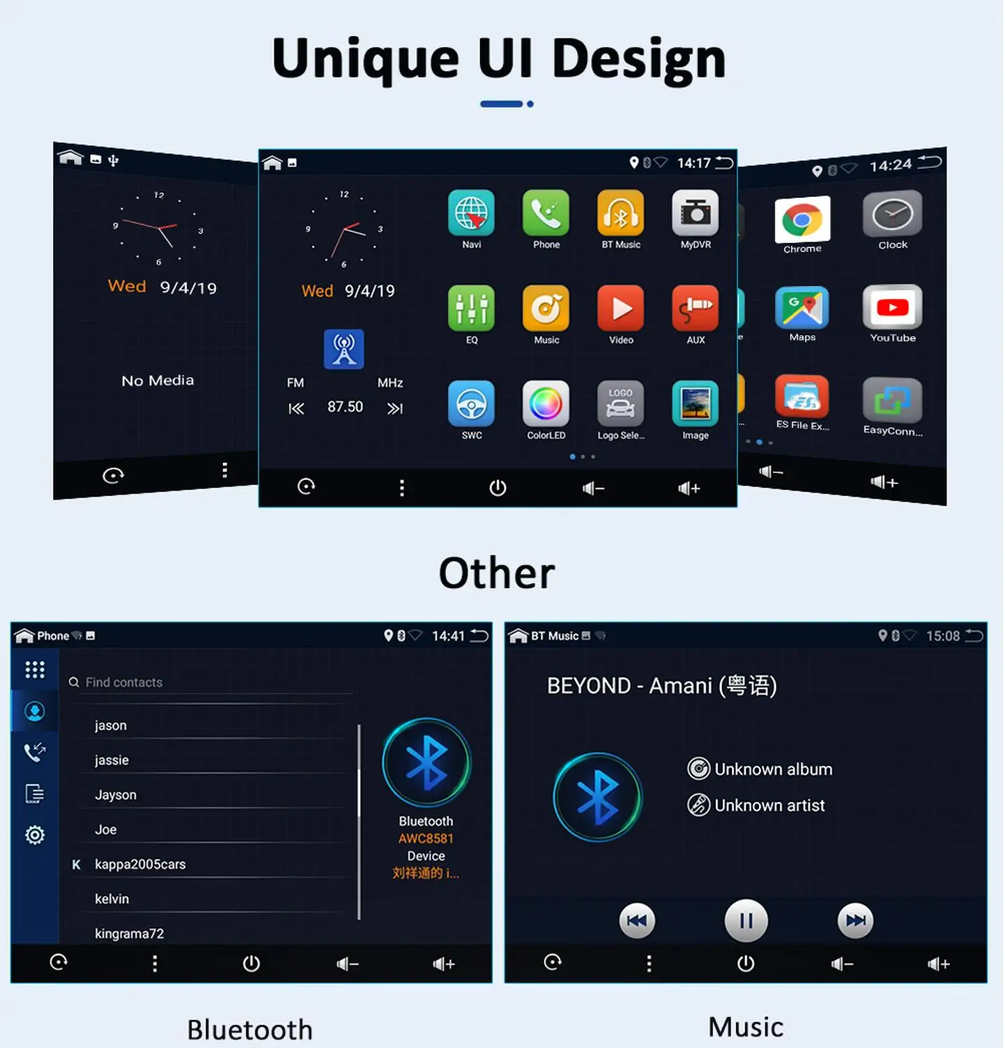 FeaturesCapacitive touch screen, Steering Wheel Control,Mic,Speakers,USB,SD