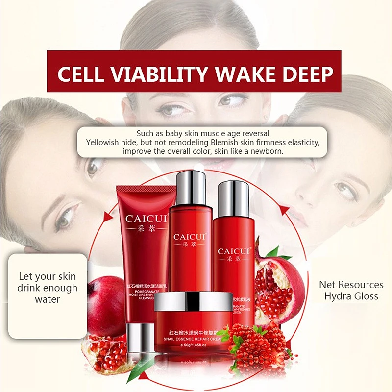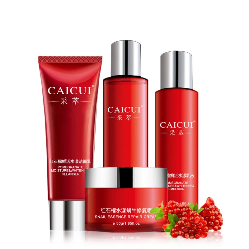 4 шт., набор для ухода за лицом, с гиалуроновой кислотой, сыворотка + Лосьон + крем + Очищающее Отбеливающее средство, увлажняющее, антивозрастное, контроль жирности пор