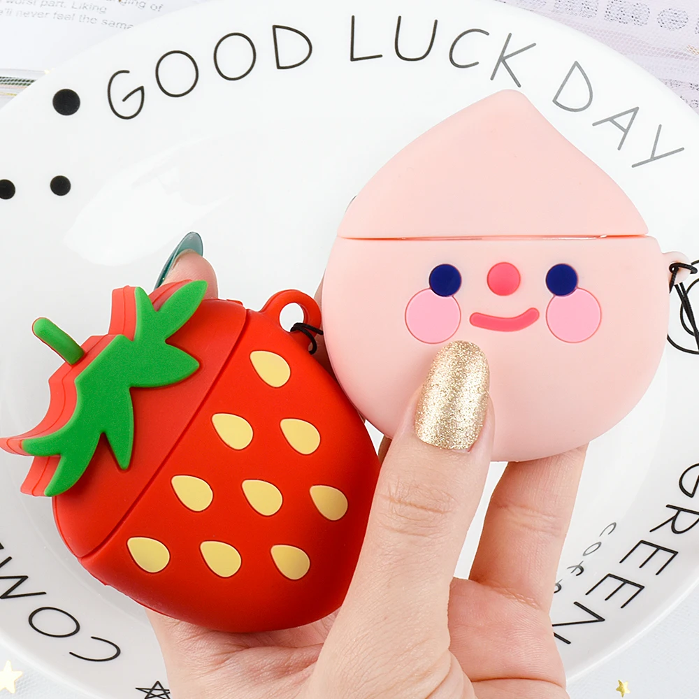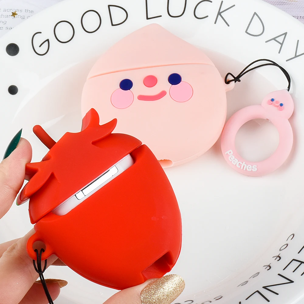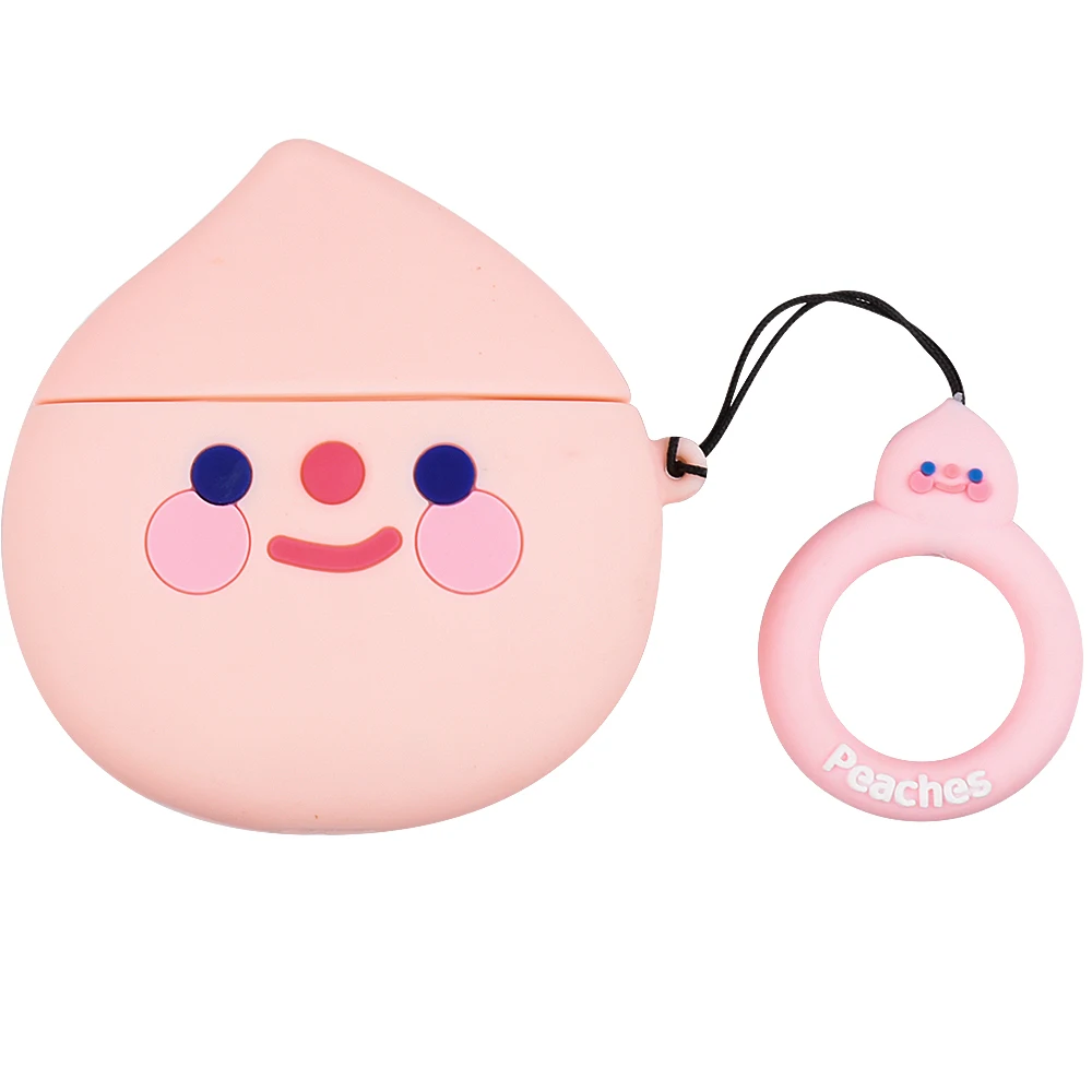 Чехол для AirPods, милый мультяшный чехол персиковый авокадо с петлей, мультяшный чехол для беспроводных наушников Air pods2, силиконовый чехол для наушников