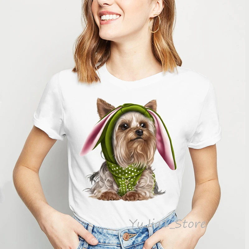 Футболка женская белая, с принтом щенка йоркширского терьера, в стиле Харадзюку