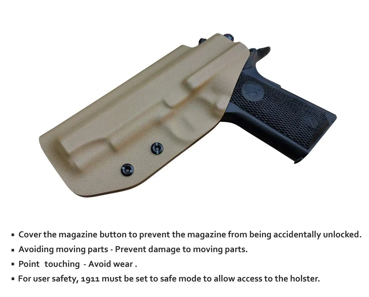 Носите с уверенностью: пожалуйста, не стесняйтесь использовать нашу портативную Скрытая кобура, чтобы защитить свой пистолет-коммандер Colt 1911. Это наша Высококачественная модель KYDEX кобура IWB для Colt 1911 Commander .45 / 9 мм 4,25 "/4,5". Он не только высокоточный, но также прочный и прочный, может быть скрыт и портативный, так что вы можете защитить себя в любое время и в любом месте.
