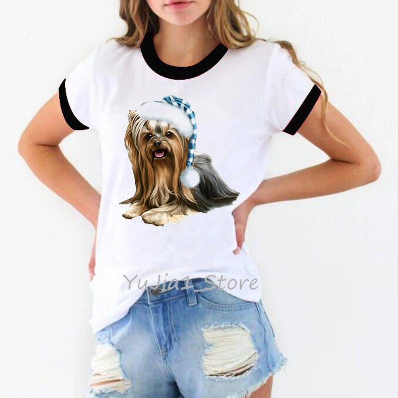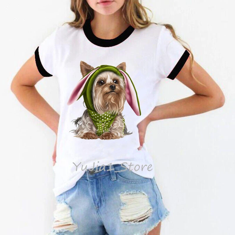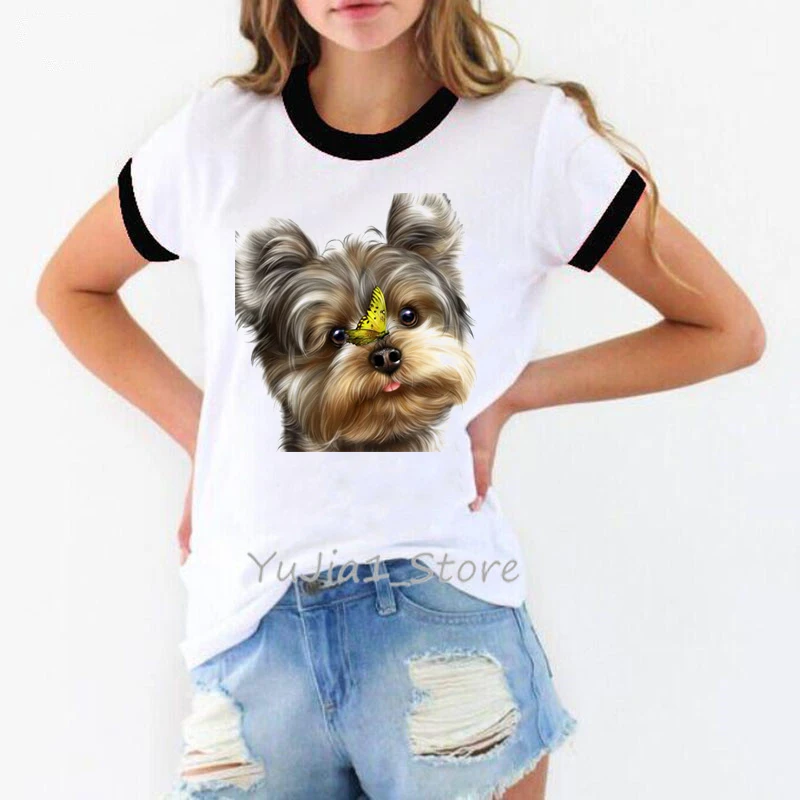 Женская футболка с принтом милого щенка йоркширов, футболка, Женская Футболка harajuku kawaii, летняя одежда, топ с принтом собаки, футболка для влюбленных, уличная одежда
