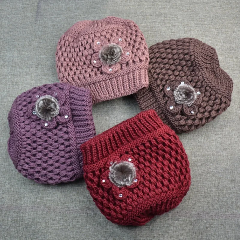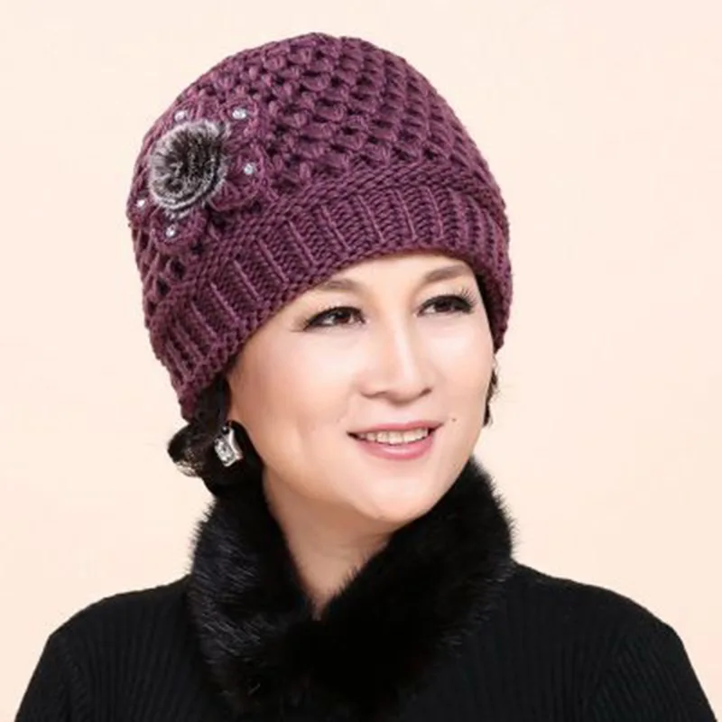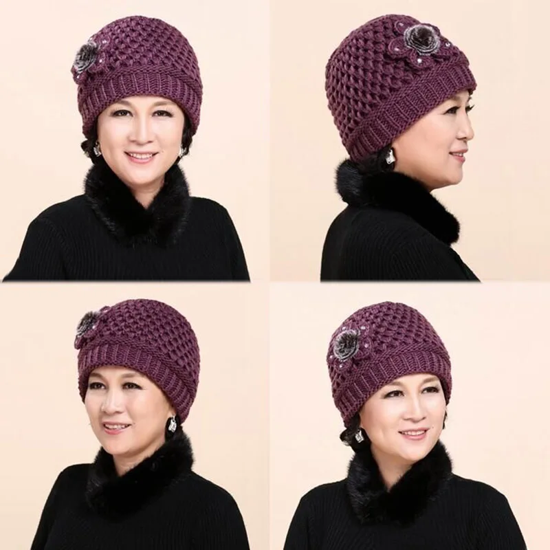 Элегантная женская зимняя вязаная шапка RUHAO, женский головной убор, теплые облегающие шапки для женщин среднего возраста, вязаные облегающие шапки, шапки