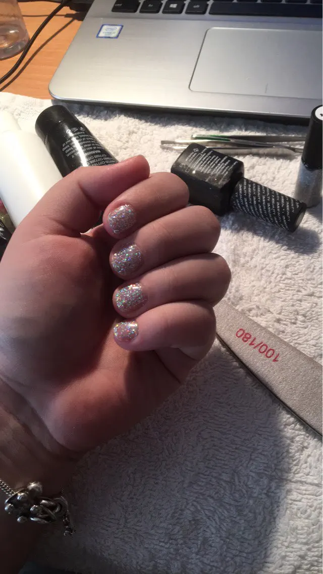 Я так рад, что они наконец-то здесь, потому что это праздничное время, и я хочу, чтобы мои ногти были блестящими и блестящими. Они такие же, как на фотографиях, блестящие и полные блесков. Мне они очень нравятся. Мне все равно, если этот год полон ума, но настало время года для блеска и блеска