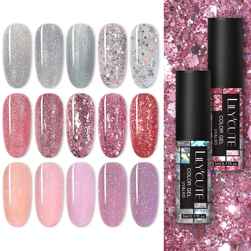 LILYCUTE 5 мл, нюдовый гель для ногтей с блестками лак гель лак для ногтей с блестками УФ Гель-лак для ногтей био-Гели Soak Off длительный Гель-лак для нейл-арта ногтей