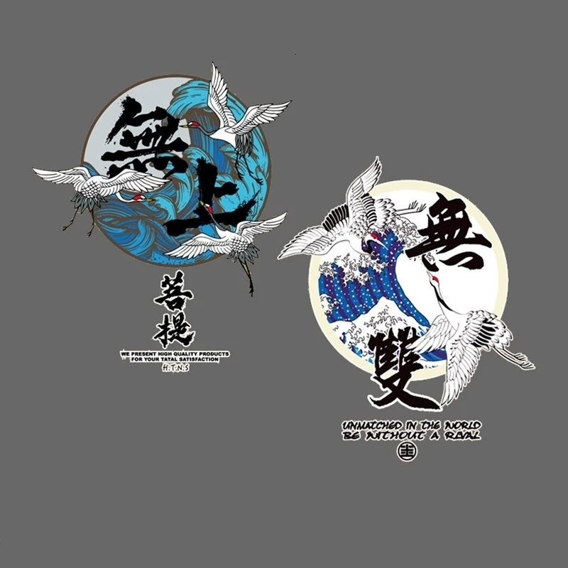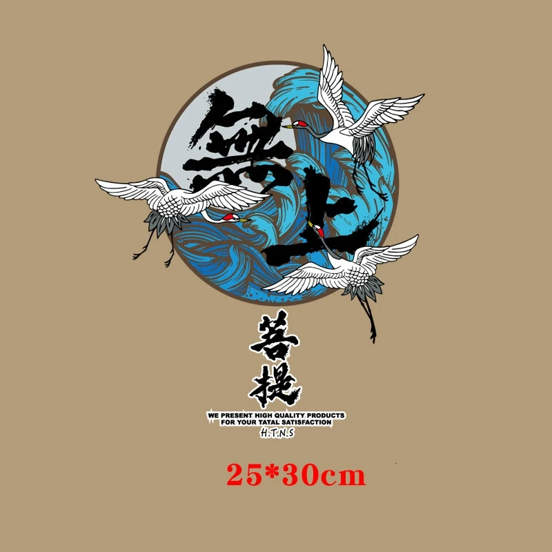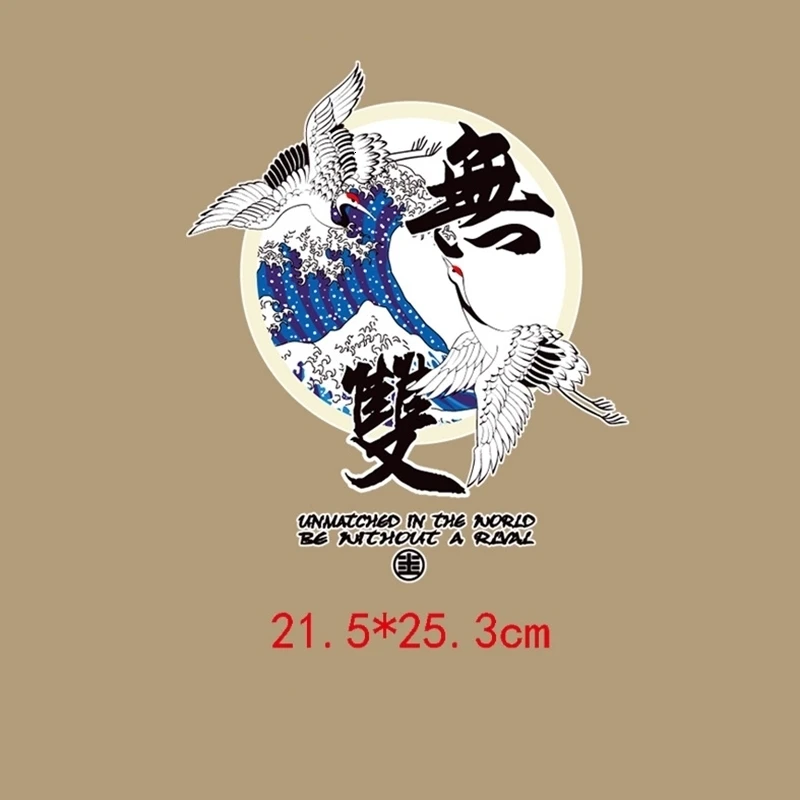 Аппликации с китайскими иероглифами и надписью журавль, термотрансф...