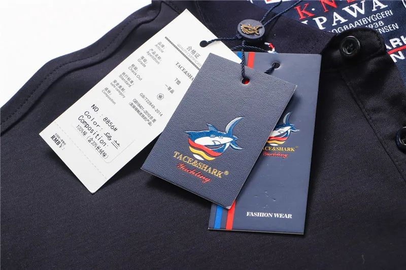 Новинка 2019, мужская рубашка-поло, Брендовые повседневные рубашки-поло Tace Shark, Мужской пуловер, футболка-поло с 3D вышивкой, мужские топы-поло с длинным рукавом