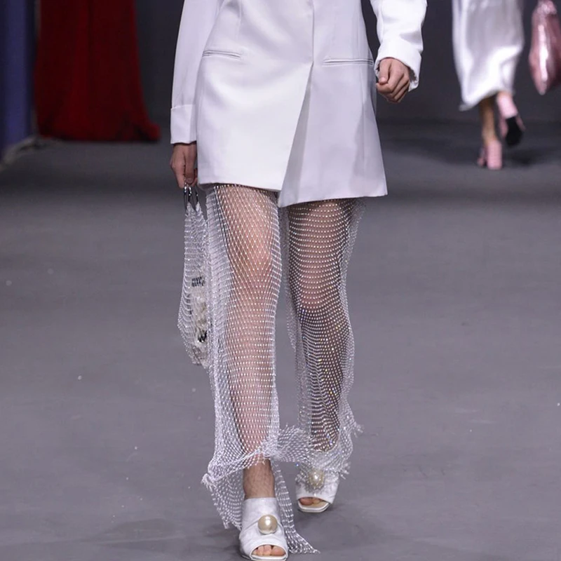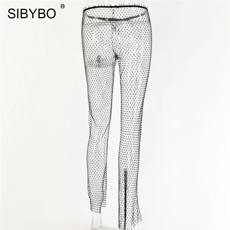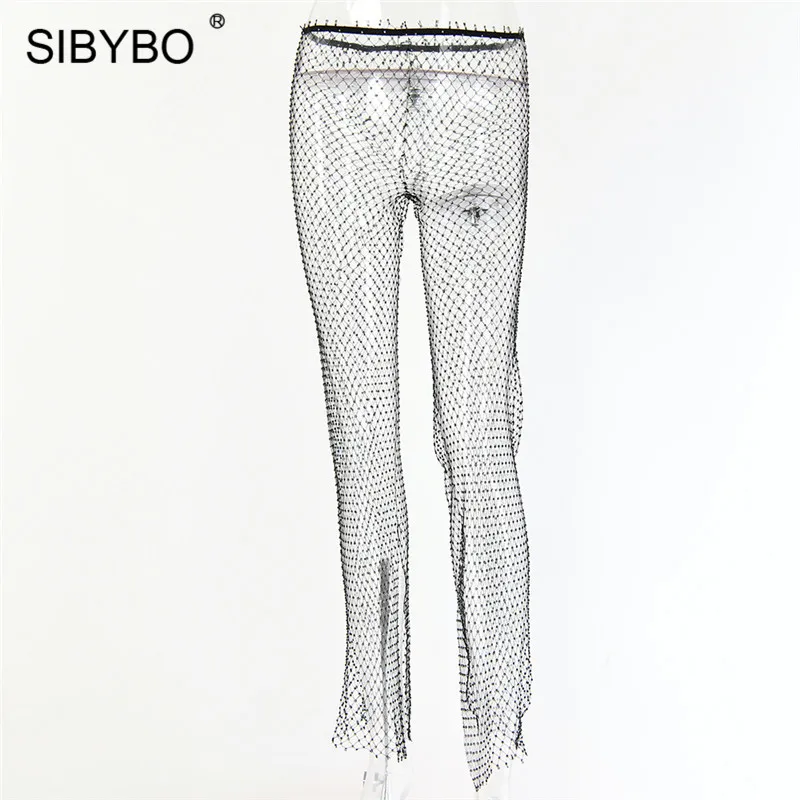 Черта:SIBYBO, бриллианты, сетчатые, с разрезом, сексуальные штаны для женщин, с выемкой, высокая талия, летние женские брюки, пляжные, повседневные, женские штаны