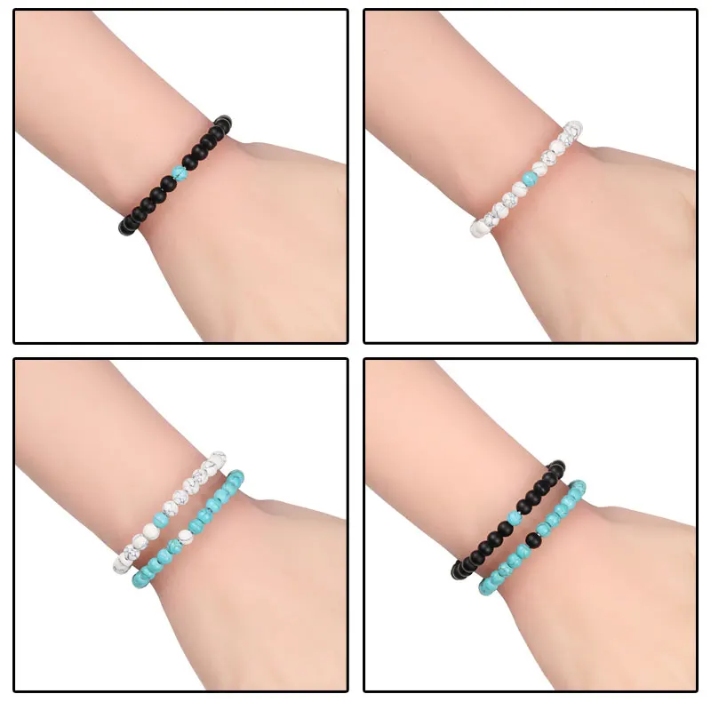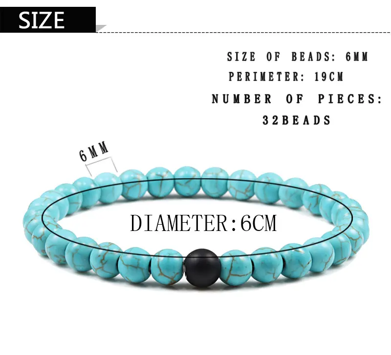 Браслет для женщин браслет для пары классический 6 мм натуральный черный матовый голубой бирюзовый браслет из бисера мужские украшения