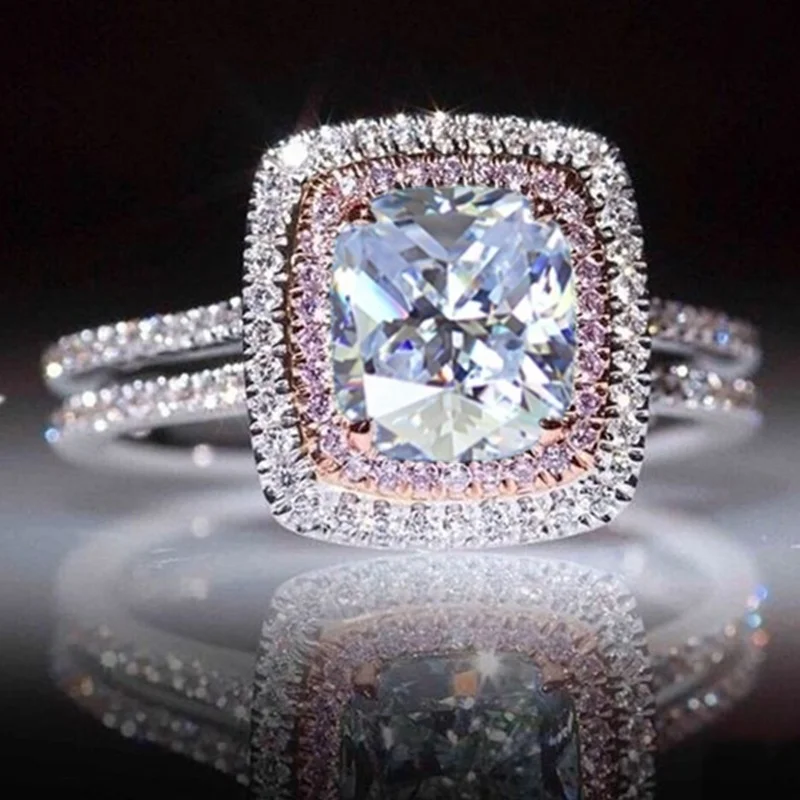 Модное женское кольцо, роскошное блестящее белое/розовое кольцо с кристаллом для женщин, аксессуары, свадебные украшения, подарок