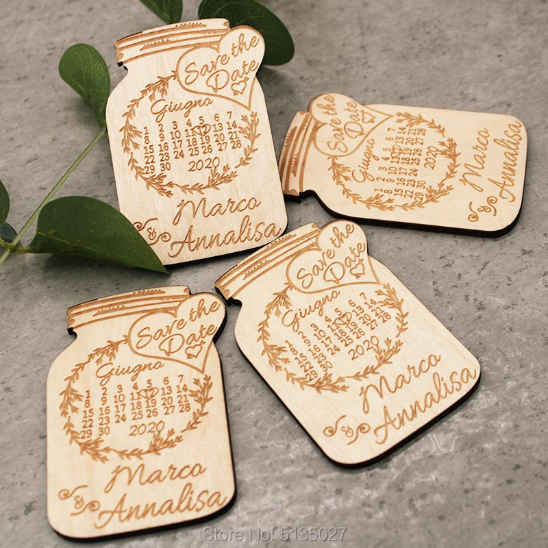Календарь Mason Jar сохранить дату с бумагой и конвертом сохранить дату свадьбу сохранить дату магнит дерево сохранить дату деревенский