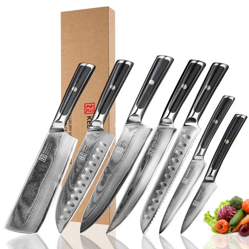 Набор кухонных ножей KEEMAKE, дамасский шеф-повар сантоку, нож мясника, нарезка, для очистки овощей, японский стальной клинок VG10, рукоятка из G10, 7 шт.