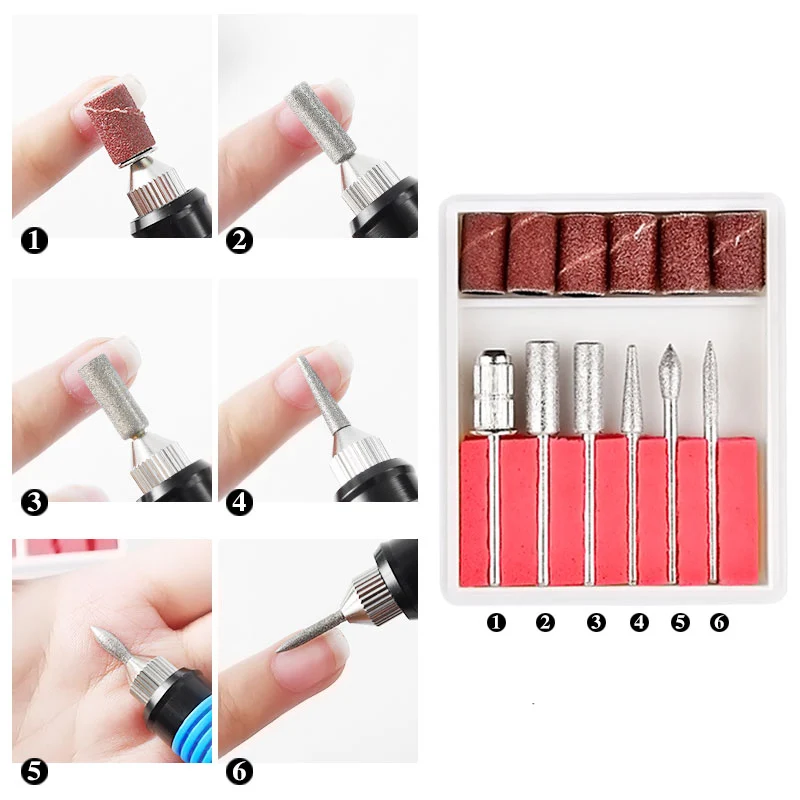 Набор сверл используется для натуральных ногтей, а также для искусственных ногтей