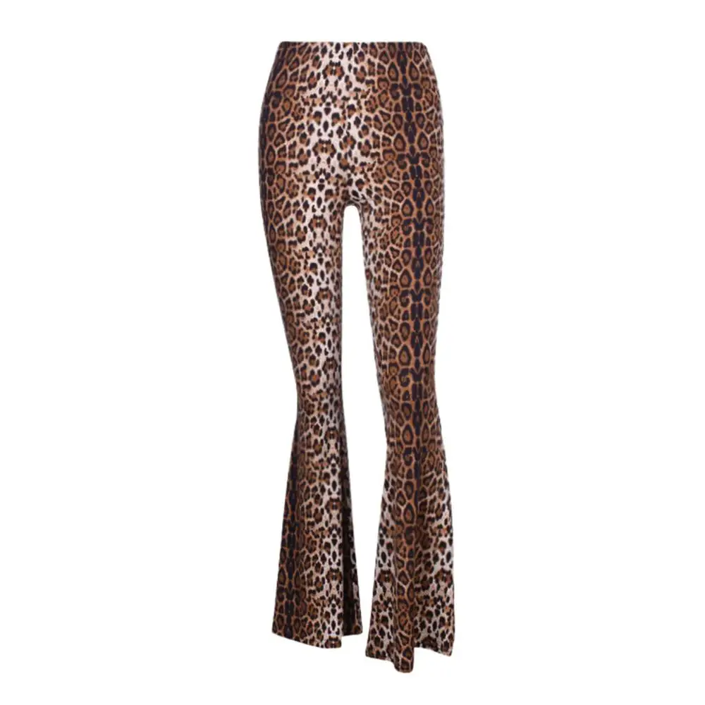 Леопардовые расклешенные леггинсы с высокой талией, Осень-зима 2020, женские модные Сексуальные облегающие брюки, Клубные брюки #0930