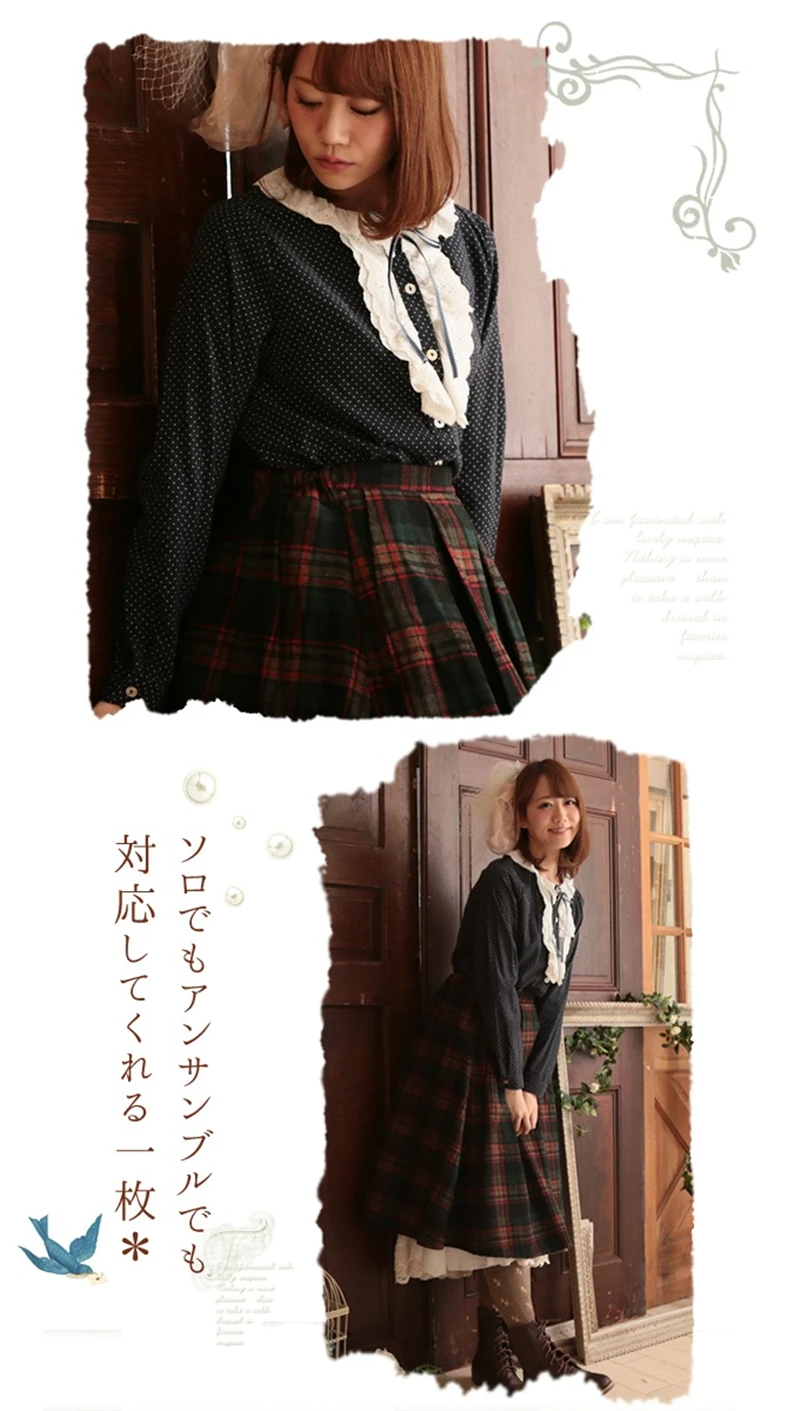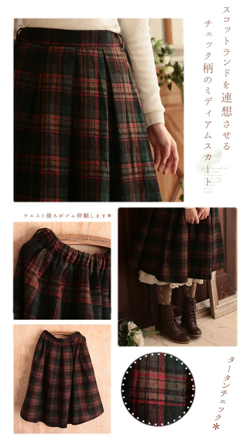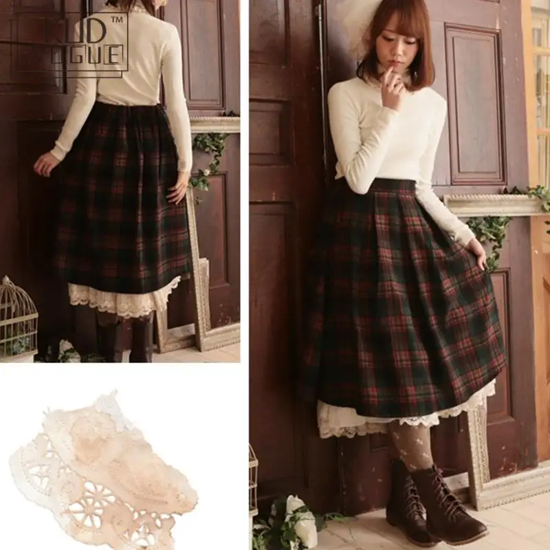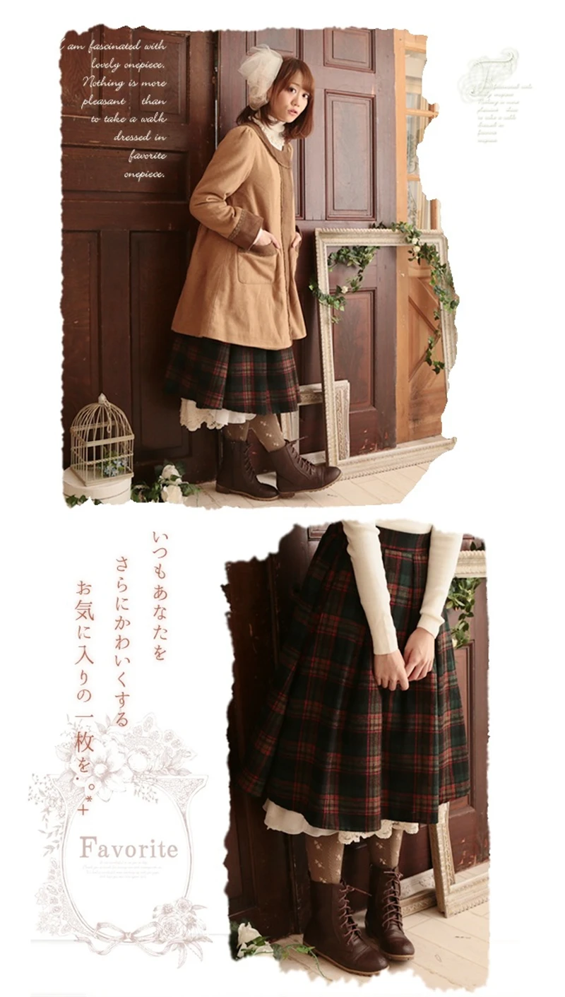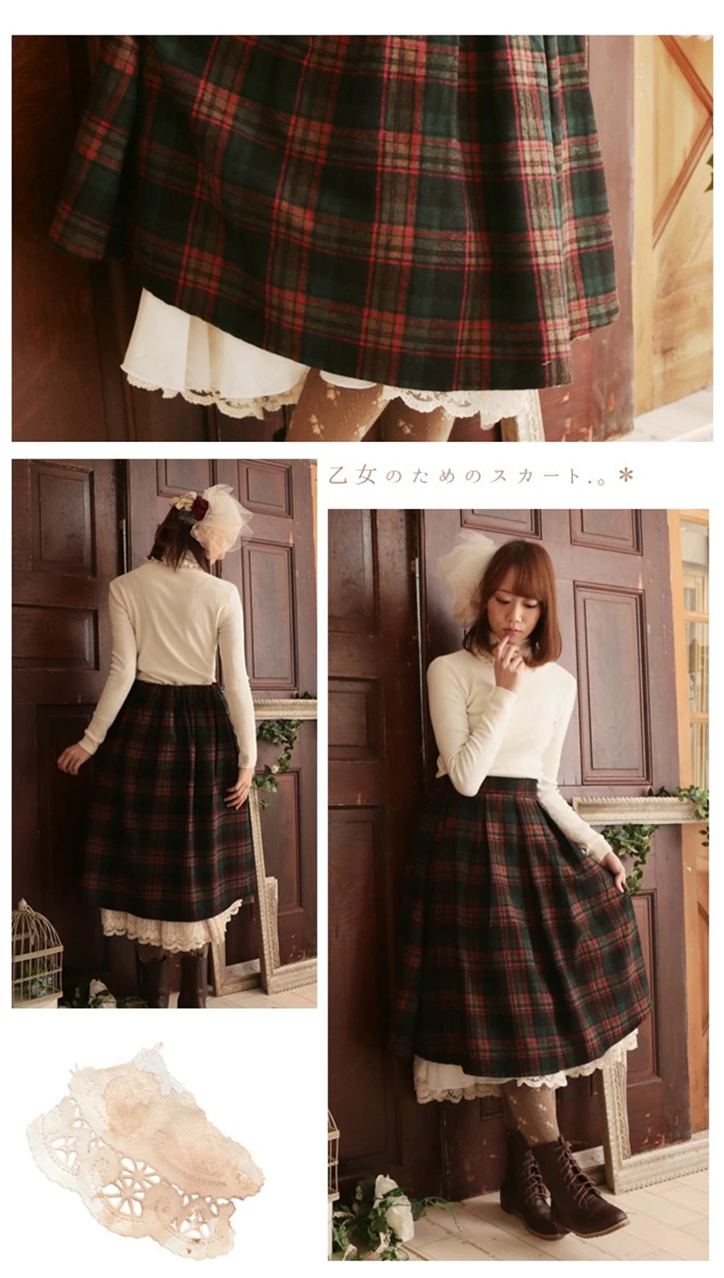 Юбка в клетку в Стиле Лолита Женская, винтажная одежда в японском стиле мори, плотная Шерстяная Юбка с эластичным поясом, кавайная юбка на осень-весну-зиму