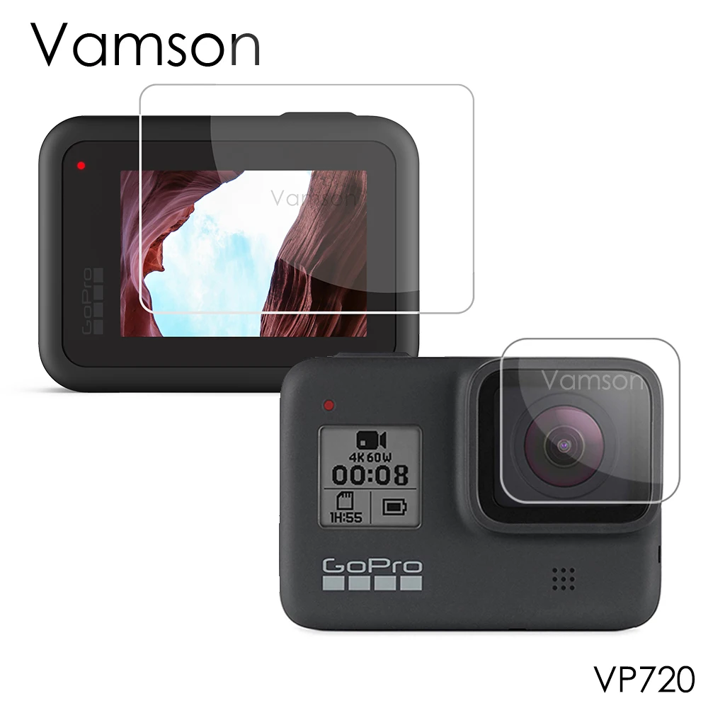 Vamson для Gopro Hero 8, черное закаленное стекло, Защитная пленка для объектива + Защитная пленка для ЖК-экрана камеры VP720