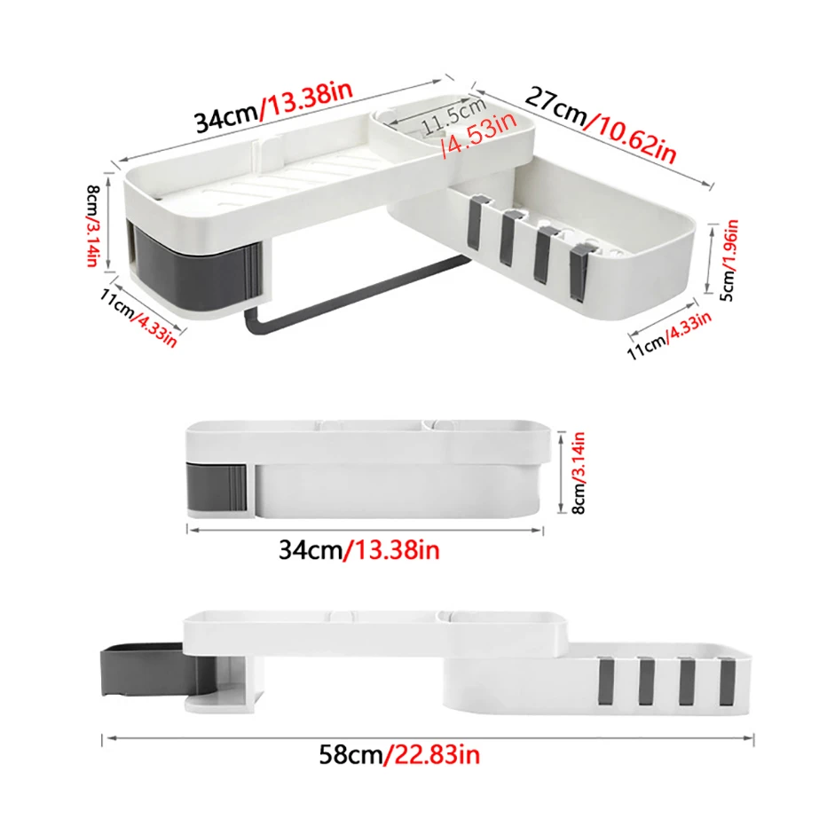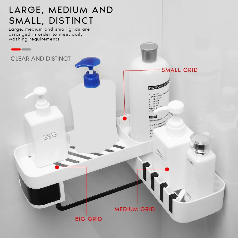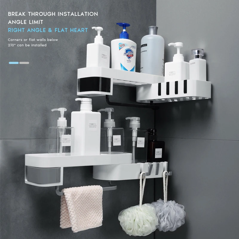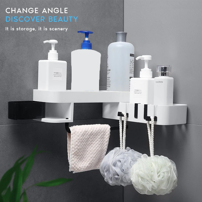 Регулируемая полка для хранения в ванной с 4 крючками, клейкая угловая полка для хранения, вращающаяся угловая полка для ванной комнаты из АБС-пластика