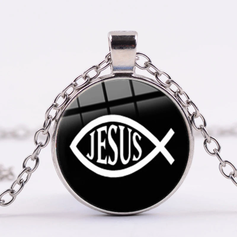 Цепочка-ожерелье с крестом в виде рыбы Иисуса вера в Иисуса