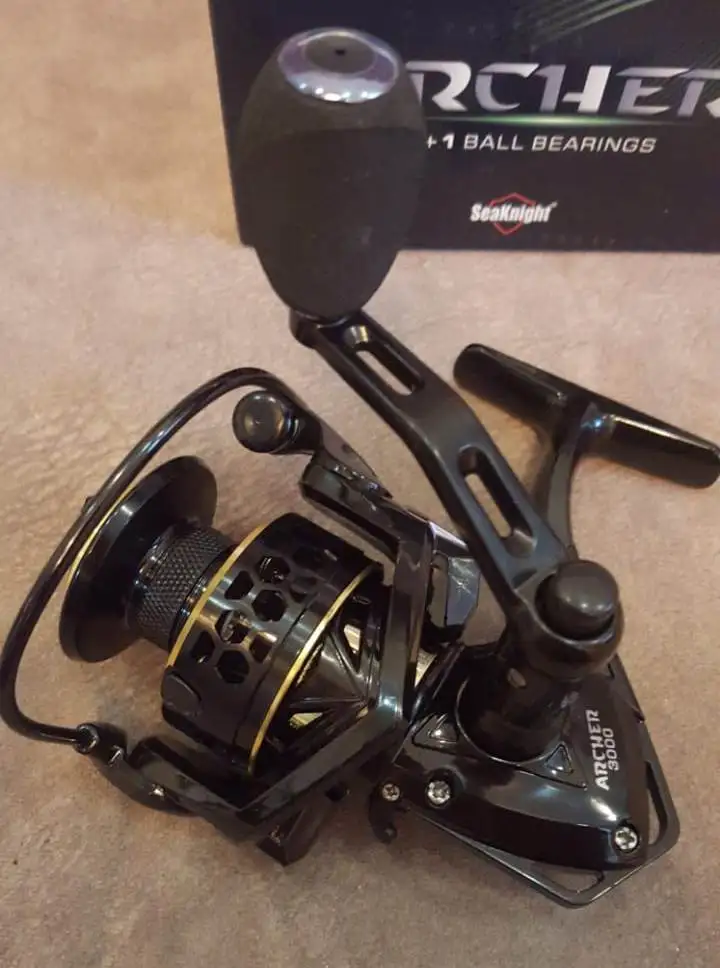 Встала задача приобрести недорогую, но крепкую катушку для тяжелых донных удочек (груз 200+ гр.), так как немного «подсел» на береговую ловлю сома и налима. От многих знакомых слышал неплохие отзывы о «аппаратах» от "SeaKnight". Остановился на модельке "Archer" в 3000-м размере.. Конечно, на любителя. В этой модельке явно прослеживается отсыл к роботам-Конечно, на любителя. В этой модельке явно прослеживается отсыл к роботам-трансформерам. Симпатичненько, довольно ажурно, но не без недостатков. Масса вполне сопоставимая с размерностью – 355 гр. Вместе с «плетенкой». Главным, и, пожалуй, забегая вперед, единственным на мой взгляд, минусом является наличие большого количества полостей и перемычек в корпусе и шпуле, куда норовит забиться грязь. Но смотрится достаточно эффектно (пока чистая). Не в восторге остался и от механизма складывания ручки, так как существенной компактности в сложенном виде он не обес в сложенном виде он не обеспечивает. В целом к покупке рекомендую.