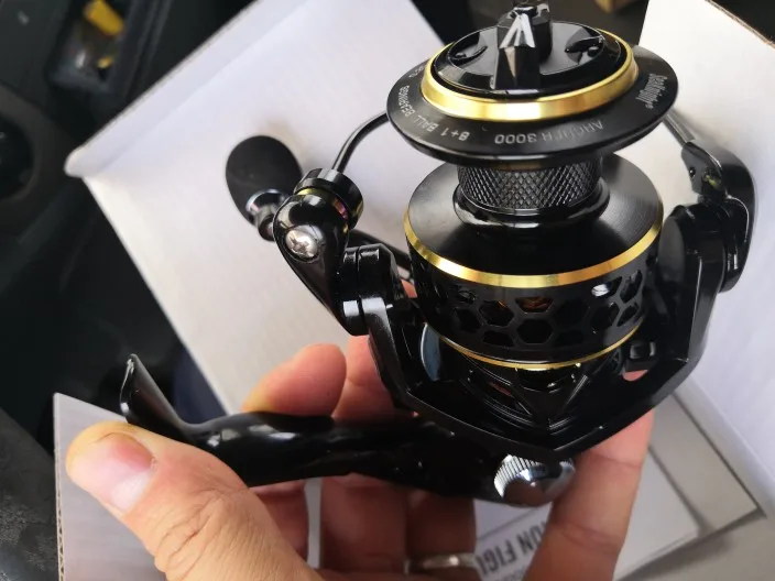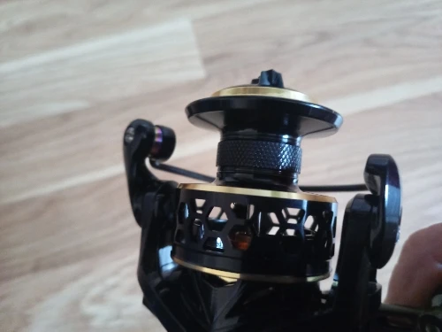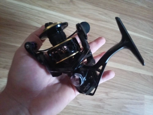 После 5 выездов на рыбалку и 10 пойманных рыб, сделаю небольшой отзыв. Катушка в 3000 серии, понравилась. Подробнее о плюсах и минусах. Плюсы: 1. Внешний вид. Да, смотрится вживую классно. На любой палке выглядит хорошо. 2. Качество сборки. За свои деньги очень плотно собрана. Четкий ход дужки, защелкивается без сбоев. Люфтов практически нет, практически, потому что всё-таки есть, об этом расскажу в блоке минусы. 3. Бесшумная. Абсолютно. 4. Удобная. Рукоятка сделана в виде мягкой вставки, хват между пальцев у спиннинга тоже очень удобен. Вообще эргономика продуманная, пользоваться приятно. Минусы: 1. Не совсем ровная намотка из коробки. Конус, сужающийся кверху. Удаление прокладки под шпулей помогает выровнять намотку, но в нижней части хода получается звук, как будто за что-то задевает. Решил сменой подкладки под шпулю на более тонкую. Максимально тонкую. И хоть намотка выровнялась, по краям остаются по 1 мм зоны, где намотка проваливается, ее там существенно меньше. 2. Небол