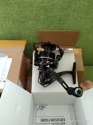 Катушка пришла быстро, заказывал бесплатную экспресс доставку, в нижнем Новгороде посылка была уже на 4й день. Катушка за свою сумму вполне работоспособная, на воде не проверял, если что дополню отзыв. На первый взгляд хорошая достойная для развития спортивной ловли. Я не профессионал в этом деле, а любитель, для любителя самое то. Из недостатков пока что заметил ручка за которую крутишь немного кривоватая на 3мм у неё погрешность, кривизна особо не мешает. По намотке леска 0.12 легла ровно без провалов. Мотал 100м но для 3000 шпули этого очень маловато, буду перематывать на плетенку тоже 0.12ю но уже минимум на 200-300м, 300 я думаю шпулю заполнит от начала до края.