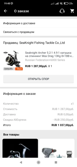 Из Москвы в Подольск за 7 дней привезли, на собаках наверно и то не ездовых. Катушка за 905 р ( распродажа+ купон) просто подарок, люфты минимальны, сделана качественно. Задал продавцу вопрос о второй шпуле к ней, он ссылку прислал, где купить. Шпуля стоит почти 700 р. Не выгодно, лучше уж пару сотен добавить и ещё оду такую же катушку купить.