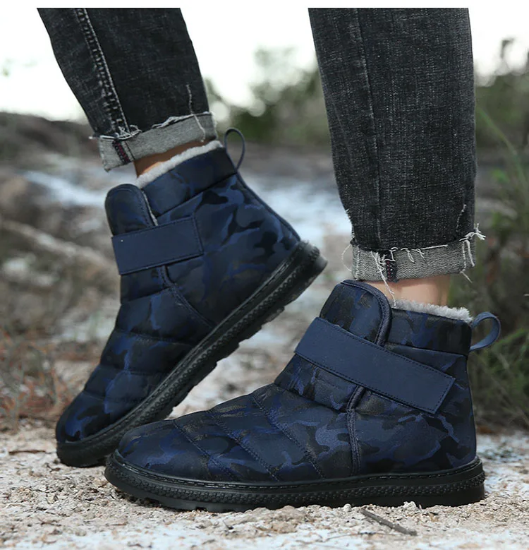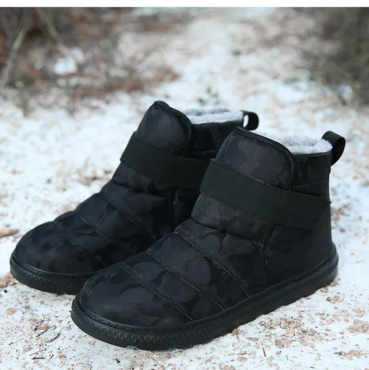 Мужские ботинки, высокое качество, водонепроницаемые, Нескользящие, женские зимние ботинки, теплые, мех, плюш, на липучке, Мужская зимняя обувь размера плюс