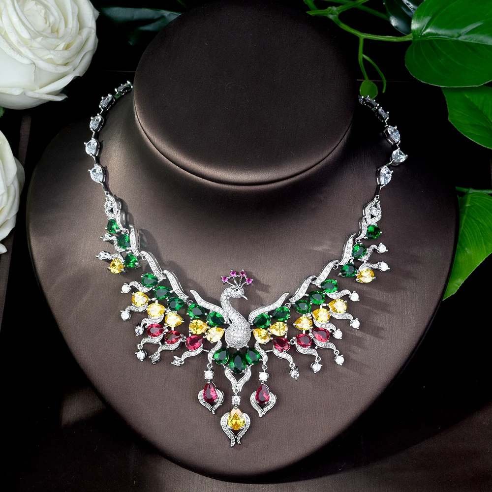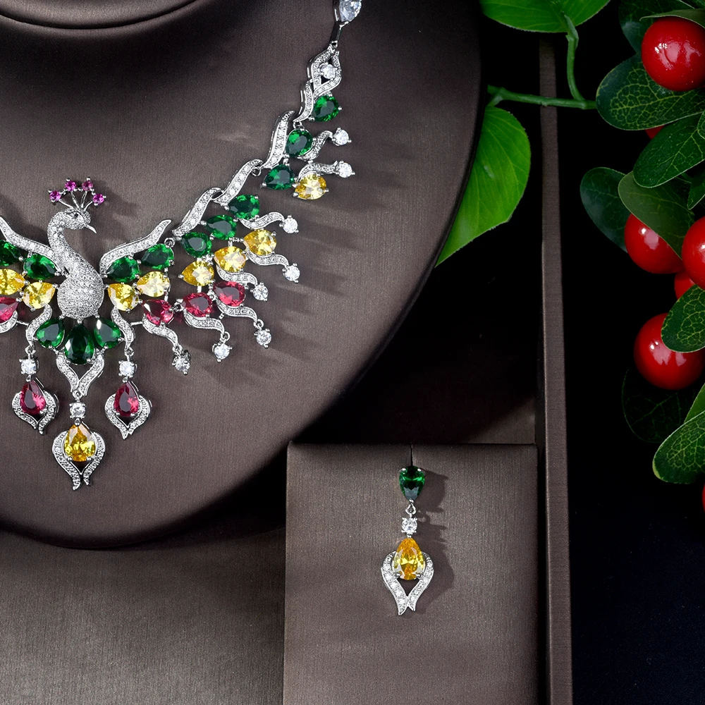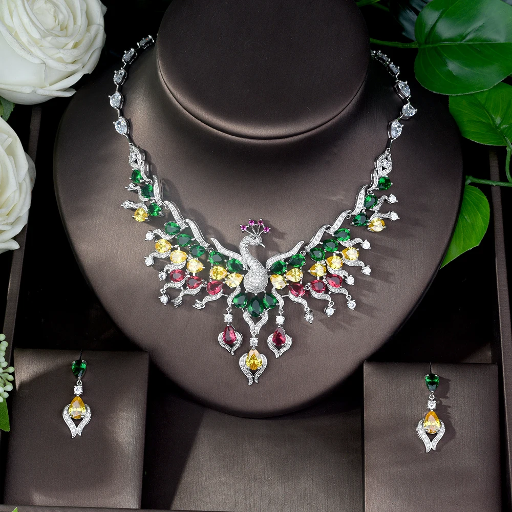 HIBRIDE, модные сверкающие ювелирные наборы для женщин, романтическая форма павлина, ожерелье, набор, бижутерия, циркон, Свадебные Ювелирные наборы, N-187