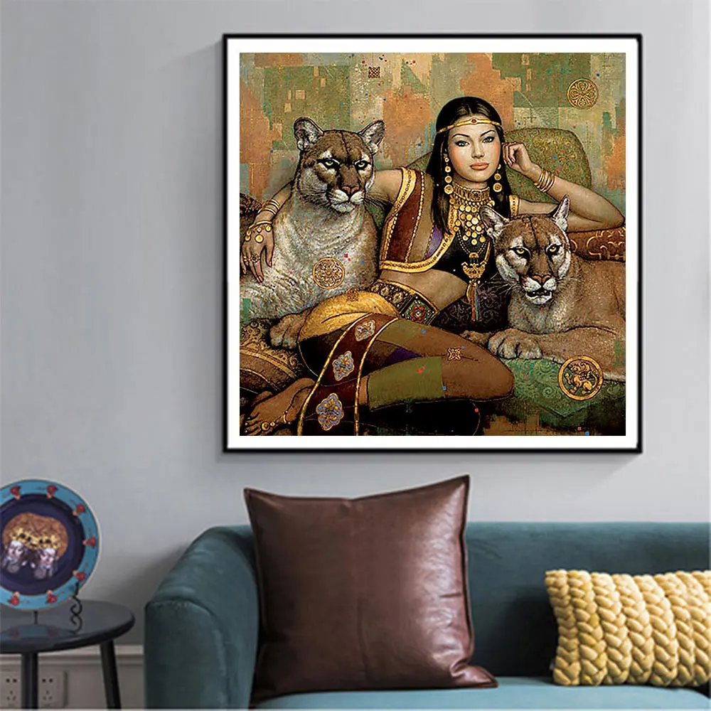Африканский Саванна Алмазная картина маслом животных портрет круглы...