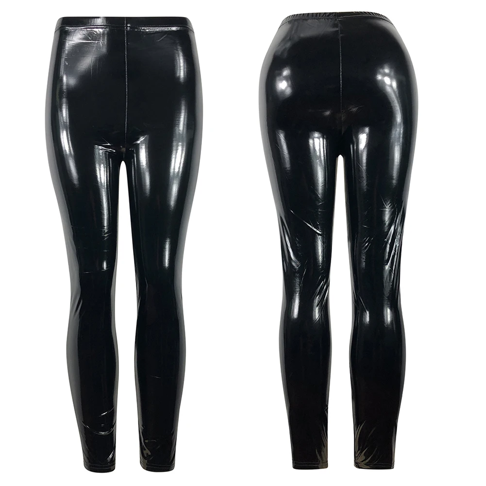 Леггинсы женские из искусственной кожи, с мокрым эффектом, в готическом стиле, тонкие, черные, дамские узкие брюки, стрейчевые, размера плюс