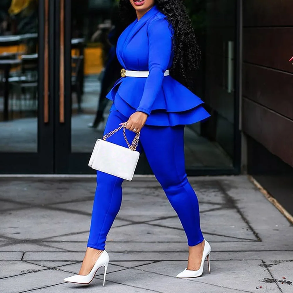 2022 весенний офисный женский синий комплект из 2 предметов: Топ и штаны, Элегантный женский повседневный деловой костюм, женская одежда