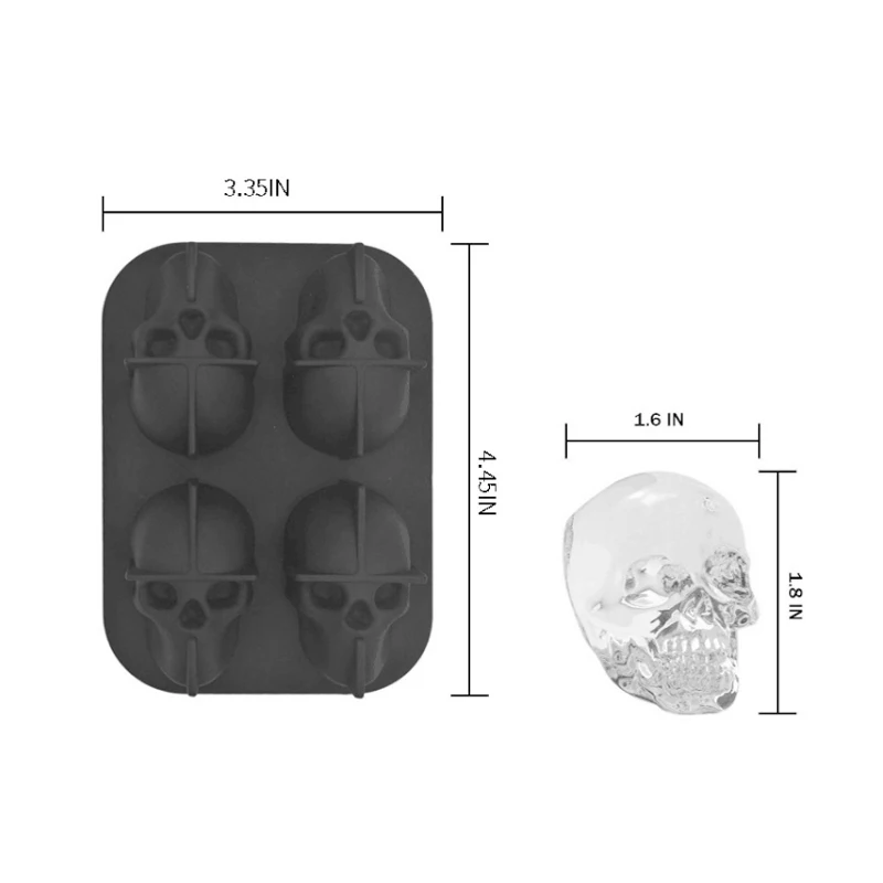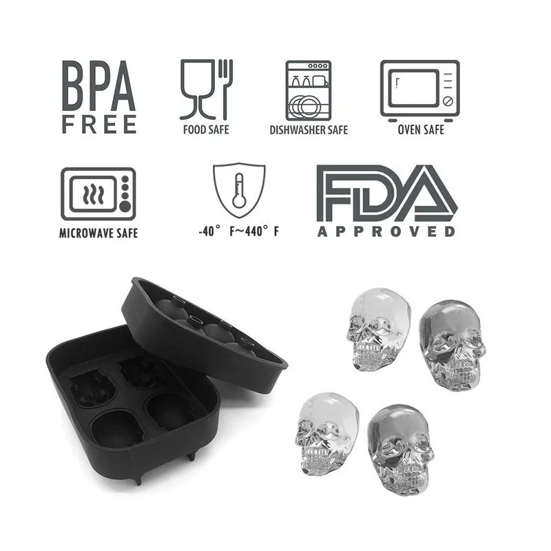 Силиконовая форма для льда, 1 шт., 3D череп, форма для леденцов, торта, формы для пуддинга, шоколада, 4 ячейки, форма для льда ромбовидной формы