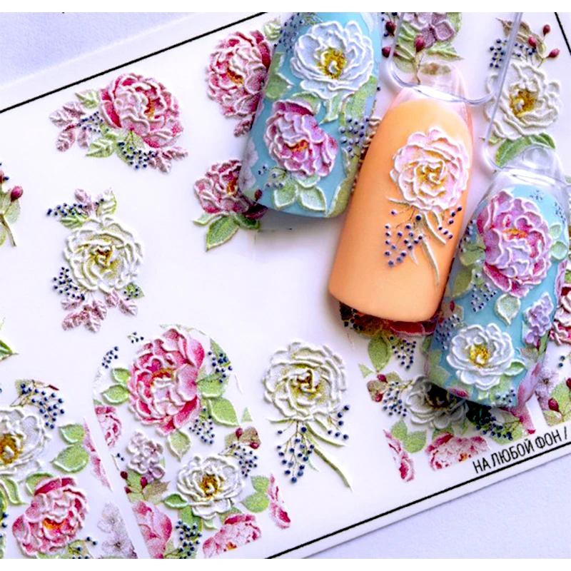 Акриловые 3D-Наклейки для ногтей разной формы с гравировкой, цветные наклейки на ногти, Z0234
