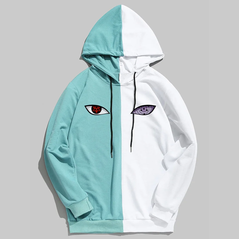 Толстовка с капюшоном, двухцветная, с принтом Шаринган, в стиле Хар...