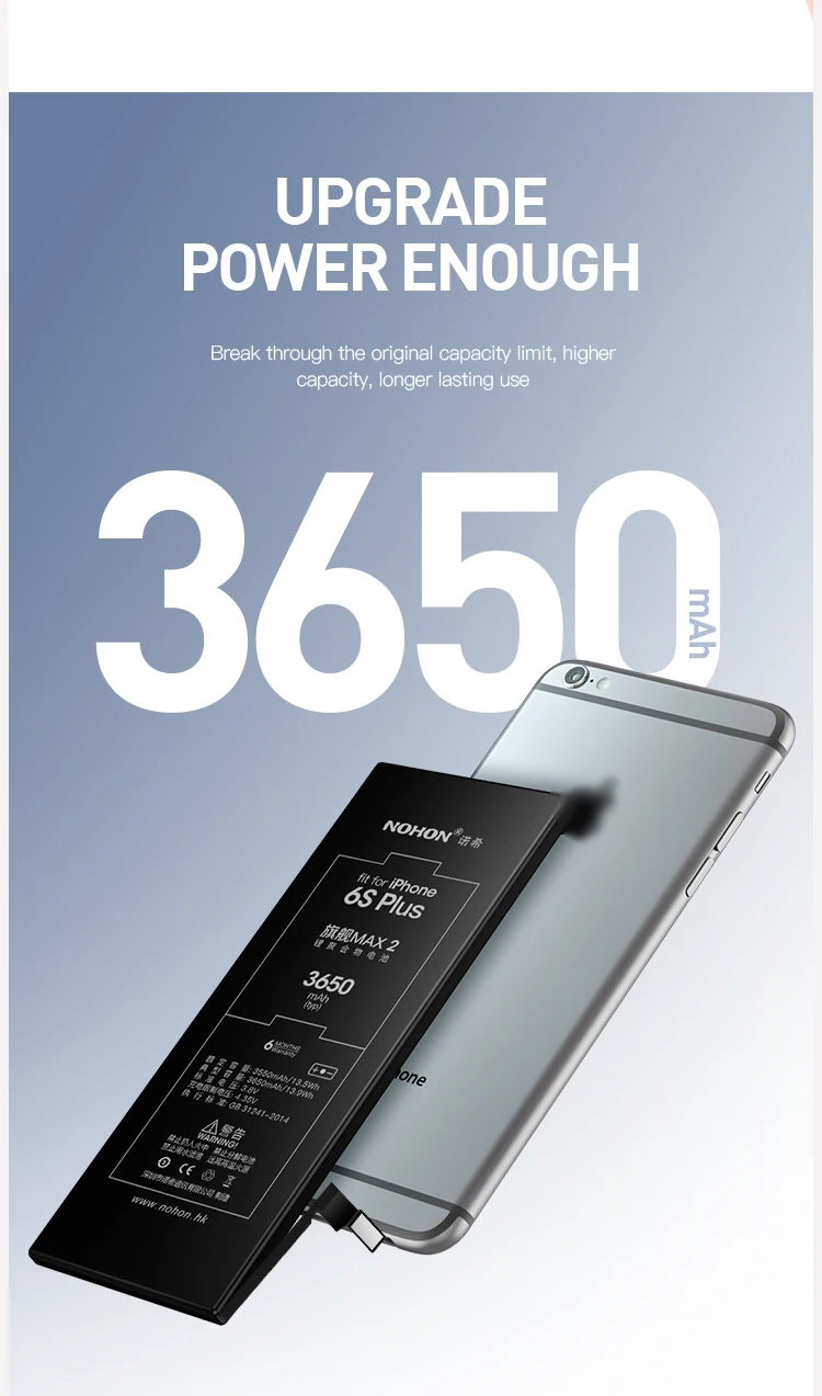Nohon Аккумулятор для iPhone 6s Plus 3350-3650 мАч максимальная емкость литий-полимерные встроенные аккумуляторы для Apple iPhone 6s Plus 6s Plus + Инструменты