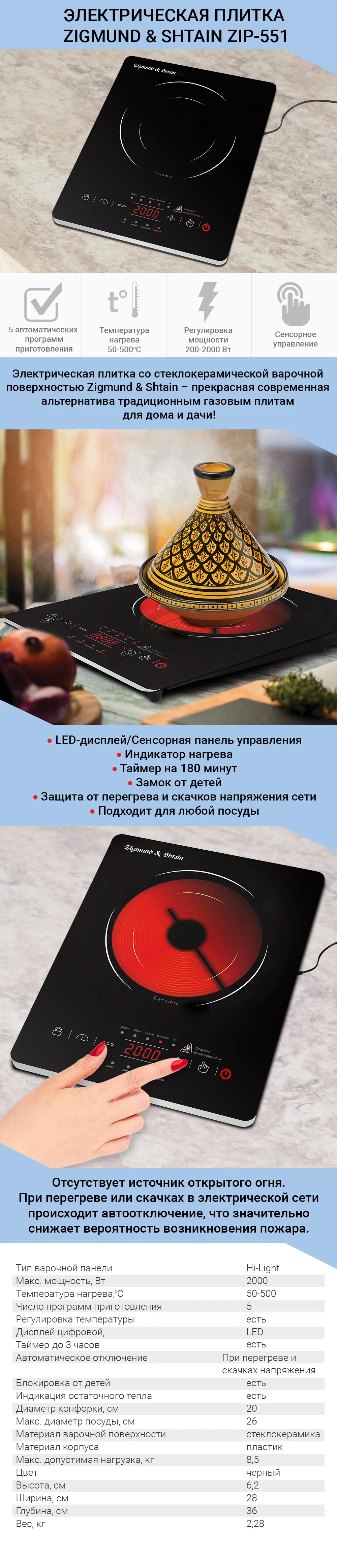 Настольная электрическая плитка ZigmundShtain ZIP-551