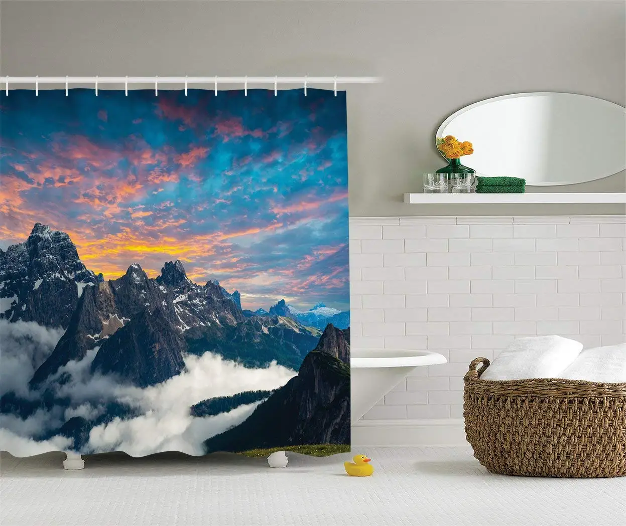 Занавеска для душа из полиэстера, с изображением альпийских альпов гор и тумана
