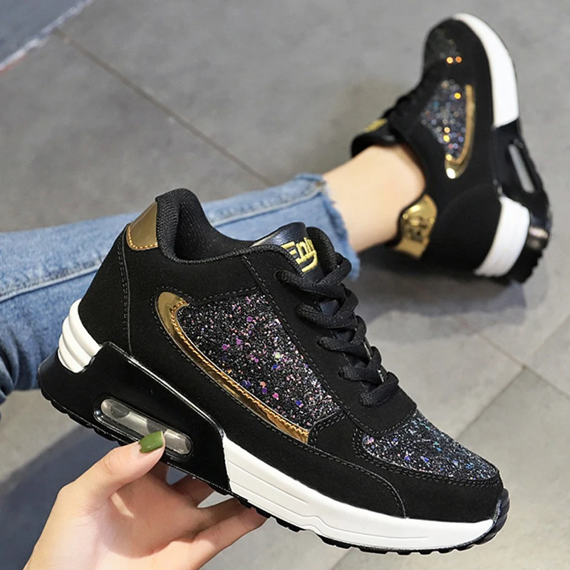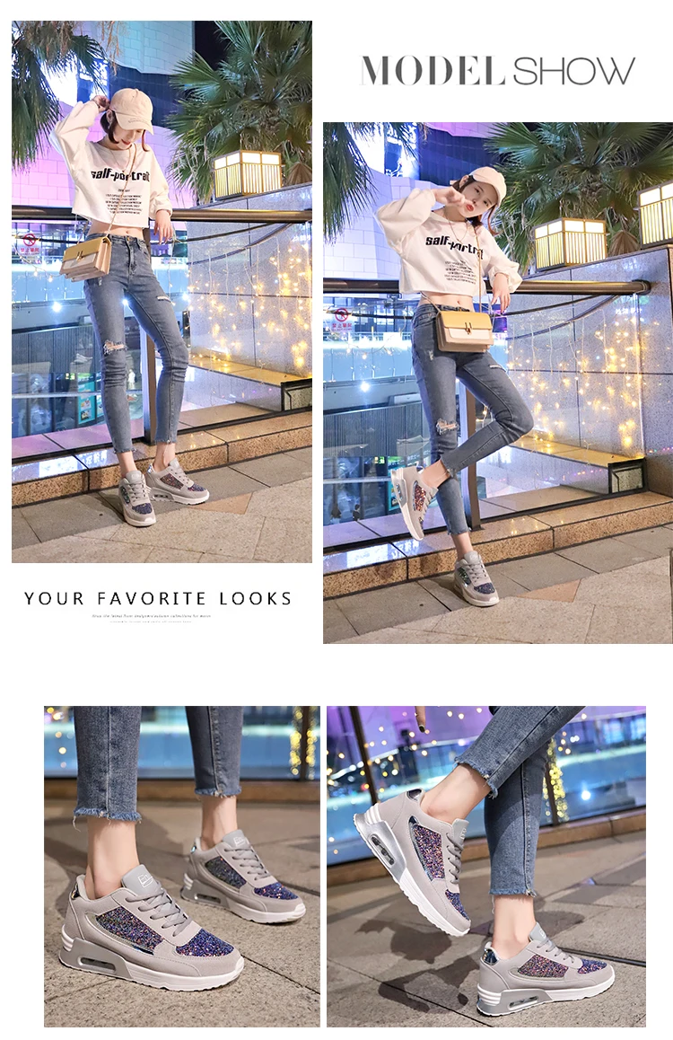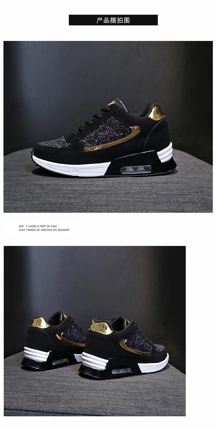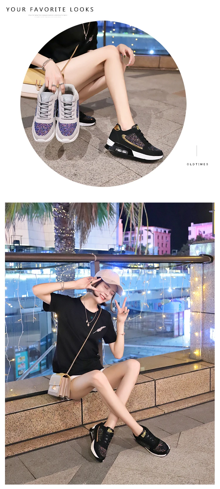 Женские кроссовки на танкетке, с блестками, модная спортивная обувь...