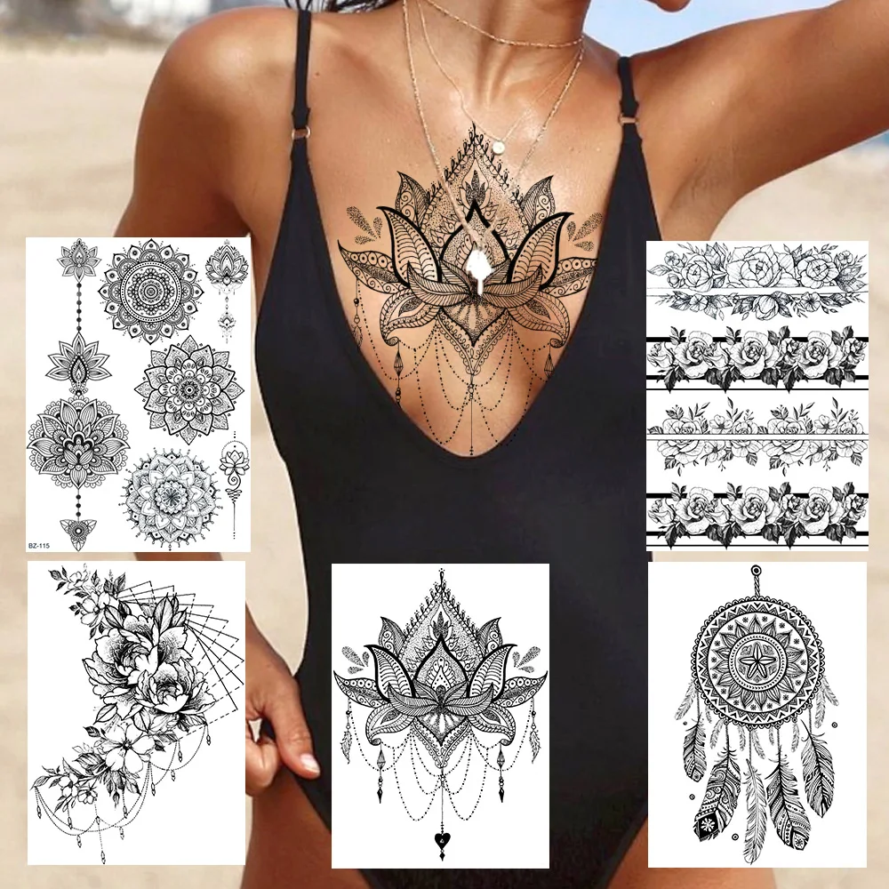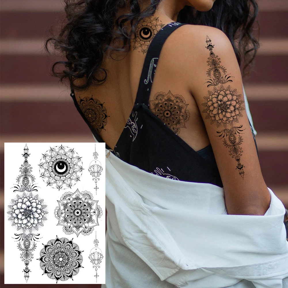 Сексуальная кружевная искусственная татуировка для женщин Blach Henna временная татуировка наклейка водная переводка искусственные ювелирные изделия браслет тату паста