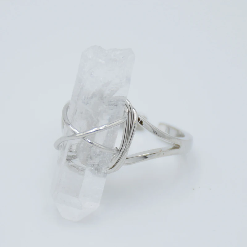 Кольцо женское регулируемое с белым кристаллом и натуральным кварцем