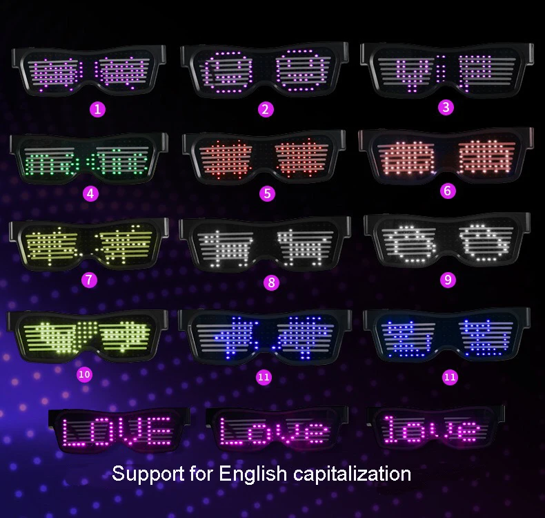 Волшебные светодиодные очки с Bluetooth для вечеринок, светящиеся очки с управлением через приложение, зарядка через USB, «сделай сам», редактирование, многоязычные светодиоды с быстрой вспышкой